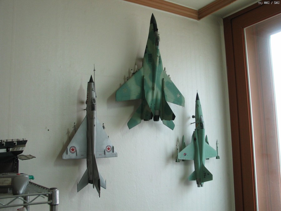 스프레이부스 위 1/32 뱅기들... 대부분 군대 말년때 만든것들이니 족히 15년은 되었겠군요... 놓을 공간이 없어서 아래에 구멍을 뚫어 긴못에 걸어두었습니다. 시간이 지나고 이사도 하고 그러니 점점 더 없어지는 부품들이 많습니다.