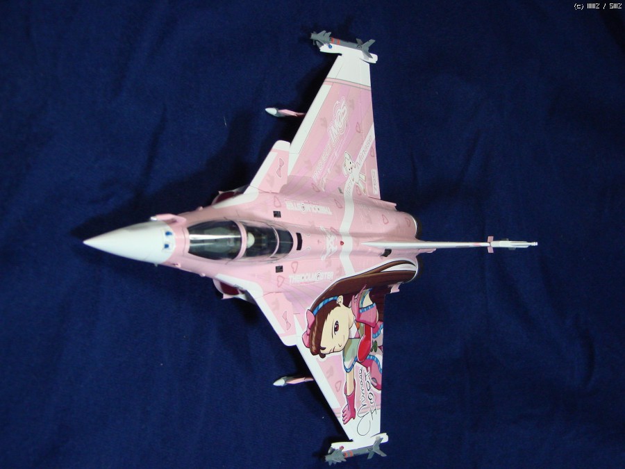 주익에 붙는 이오리의 메인 데칼...저거 여러 모로 할 말 많은 물겁니다. 라팔의 주익에서 동체로 이어지는 부분은 오묘한 3차원 곡선인데...거기에다 대짜만한 데칼을 그냥 통으로 붙이게 되어 있습니다. 당연히 그냥 붙이려고 하면 사방이 튿어집니다. 결국 비슷한 색을 만들어서 튿어진 자국들을 땜질했습니다. 거기에다 붙이고 나니 동체쪽에 붙은 부분은 테두리만 동체에 붙고, 중간 부분은 표면에서 붕 떠버렸는데...다음날 보니 위에서 쓴 것처럼 지가 알아서 달라붙었더군요.