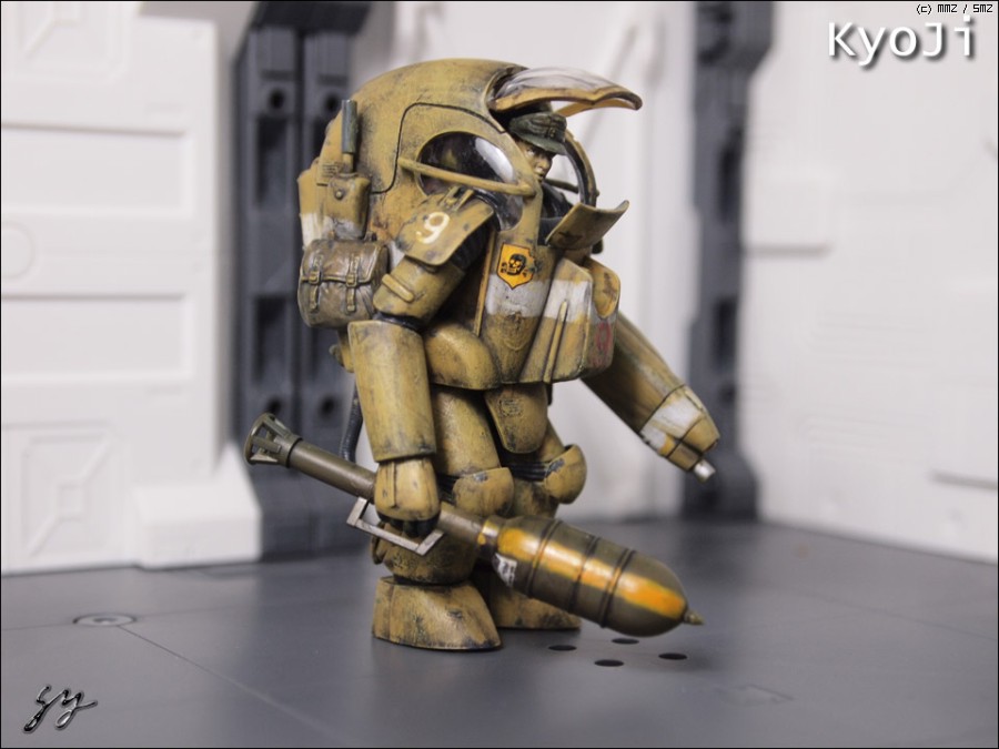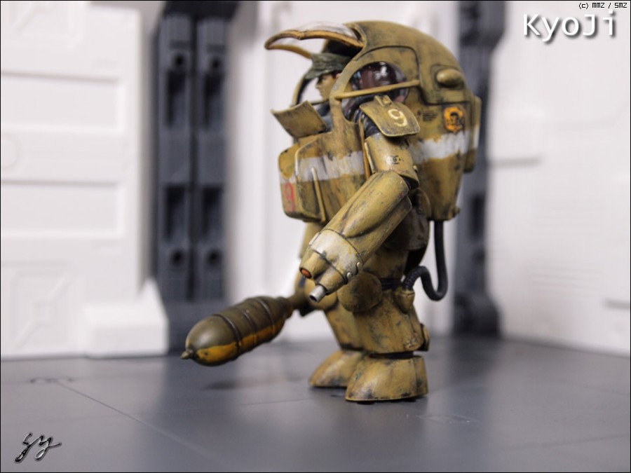 판저파우스트(?)의 앞부분은 그라운드 수투카의 것으로 바꾸었고 등쪽의 철망은 몰드 된 것이라 파내고 에칭그물로 대체, 얼굴은 드래곤의 것을 가져왔습니다.