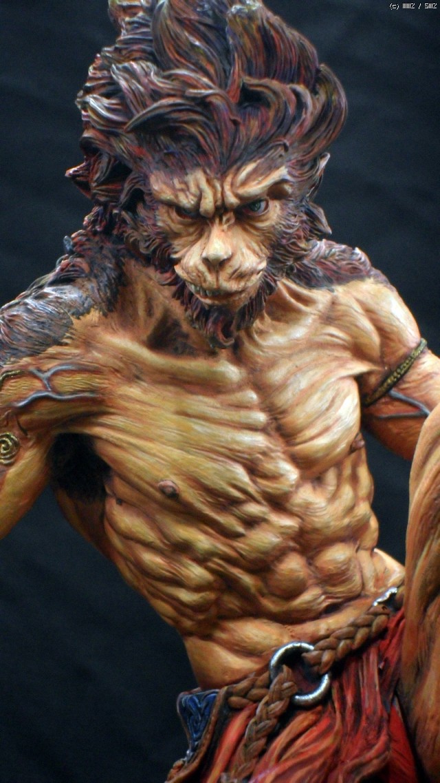 아크릴 붓도색이 95%이상이고 여의봉에는 에어브러슁작업을 병행했습니다