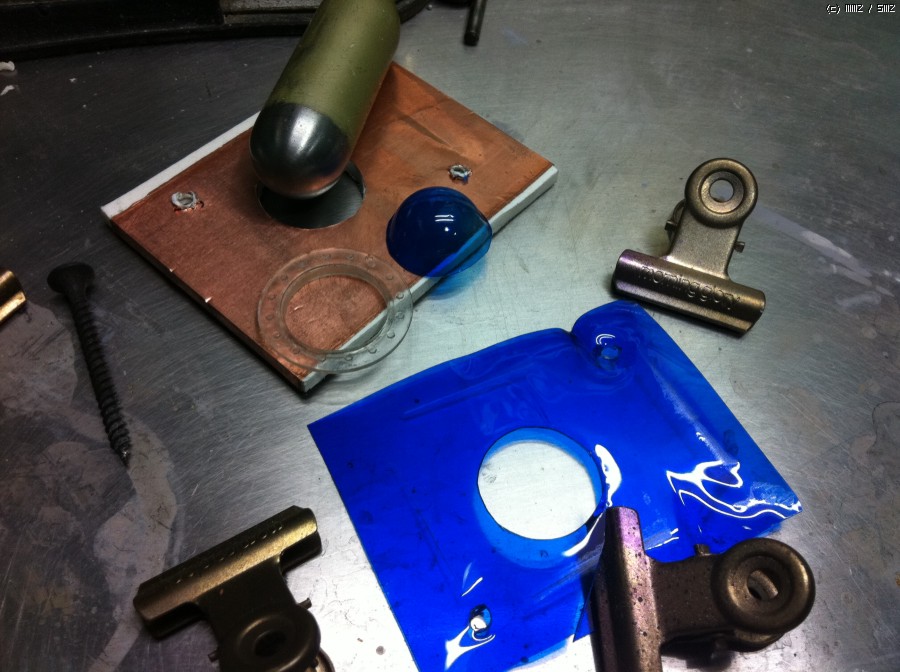 원작의 눈 디자인은 평판 유리 였는데 저는 좀더 물고기 답게 만들고 싶어 볼록한 유리로 설정 하고 간단한 히트프레스 작업을 하여 이녀석에 맞는 눈을 만들어 주었습니다.