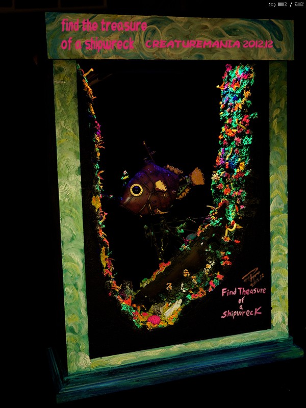 이사진에 나오는 잠수함 등 부분의 흰색 점은 블랙 라이트에서만 반응하는 스프레이를 사용한 예입니다. 다른 사진 에서는 이 사진 처럼 등 부위의 흰색 점이 사라져 있는 것을 찾으실수 있을것입니다. 이 스프레이는 일본에서 제작된 특수한 용도의 스프레이 입니다.