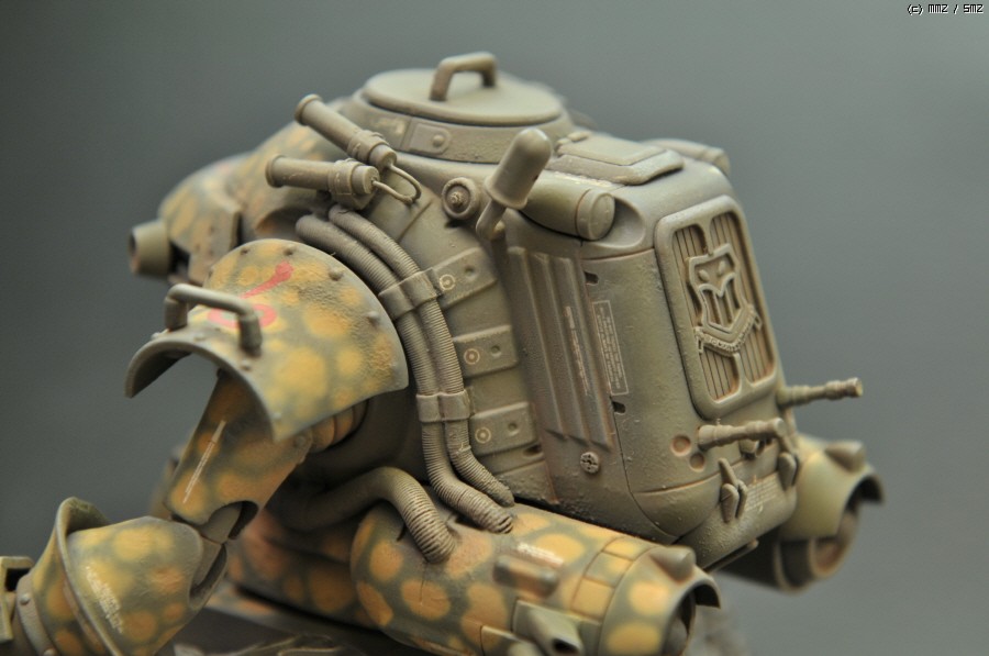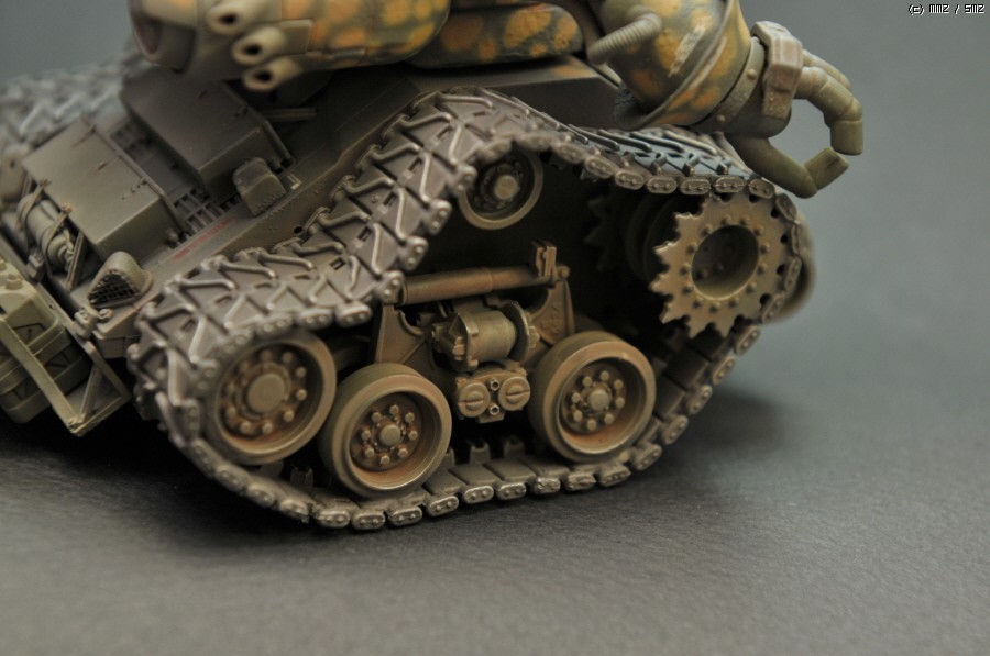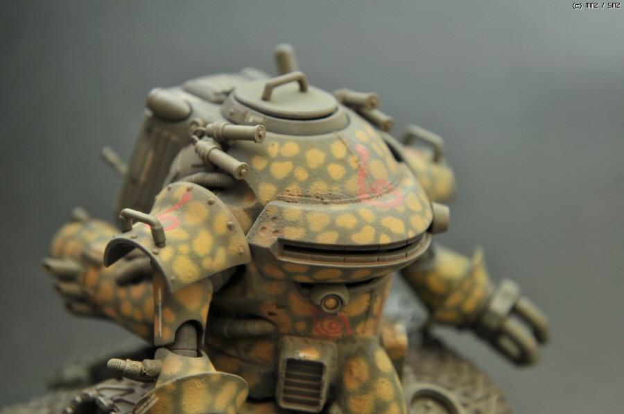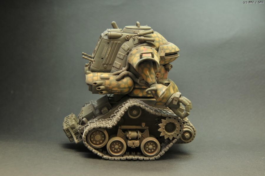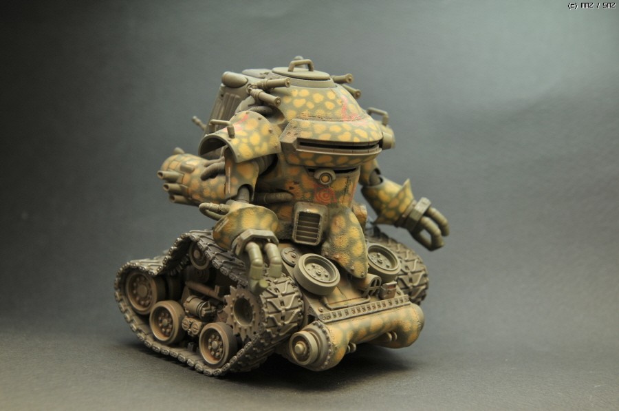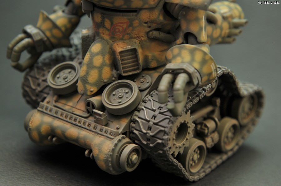상체는 Wave제 光武라는 녀석의 상체를 가져왔고, 하체는 HG 건탱크의 몸체에 1/35 셔먼전차