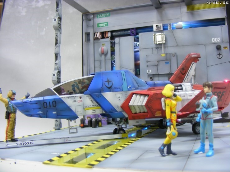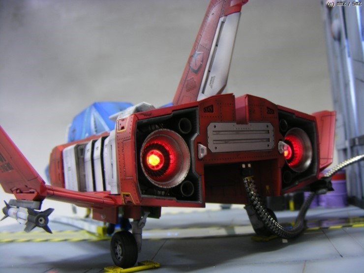 노즐에도 역시 led...베이스에 딸린 선을 코아 파이터에 연결하면 됩니다. 이렇게 한 이유는 차후 건담 제작해서 건담 베이스로도 활용하려는 꼼수와 함께 코아 파이터를 스탠드에 세워 컴퓨터와 연결해도 불이 들어오게 됩니다.