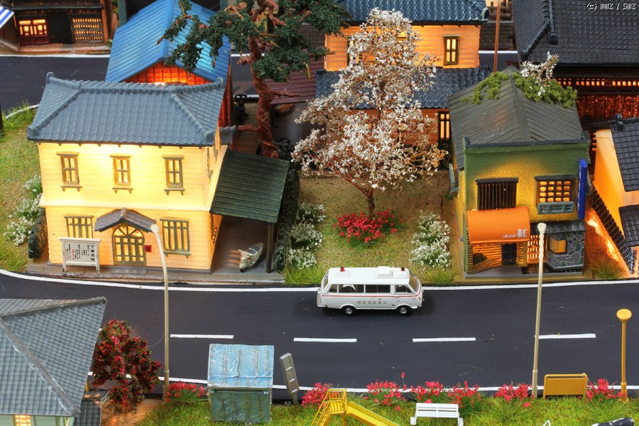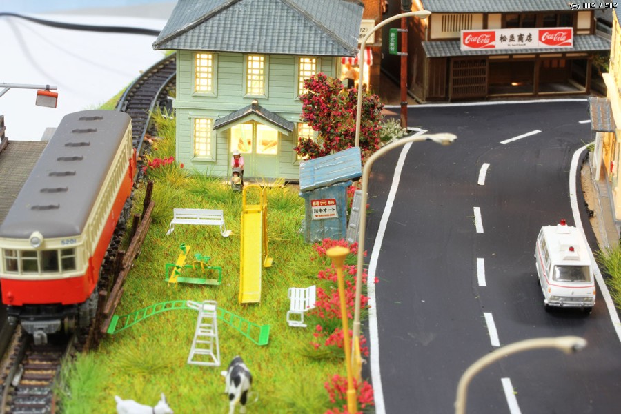 친구와 그 아들이 함께 제작한 디오라마 에 도로, 나무, 지면, 꽃밭 등의 표현 을 해주었습니다. 작은 기차역이 있는 일본마을 입니다. 이번 디오라마의 주제는 이별이 되겠습니다.^^