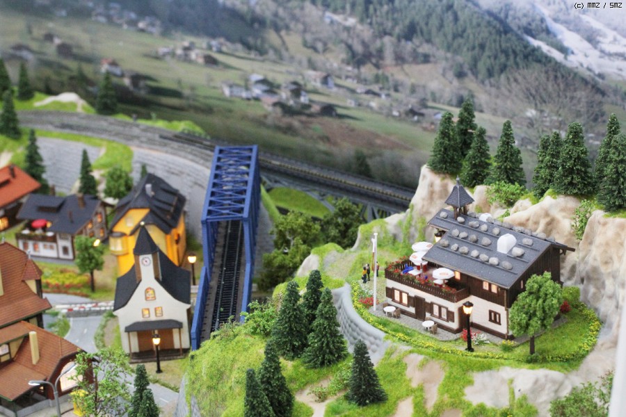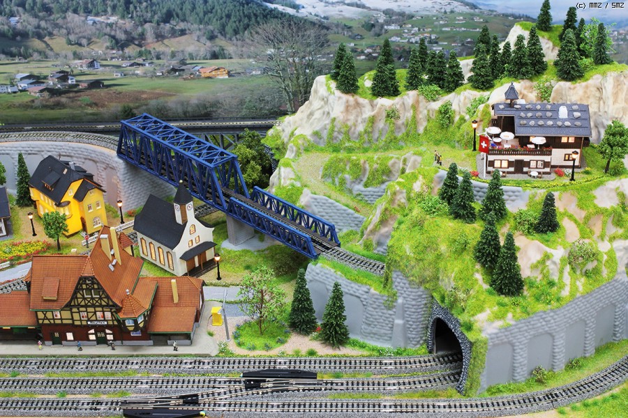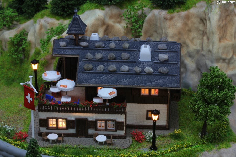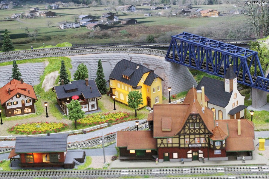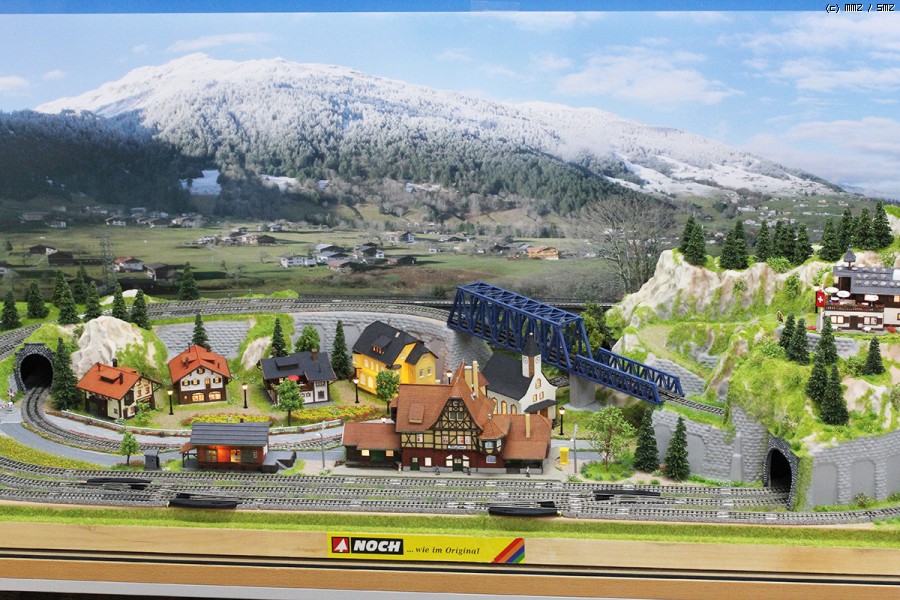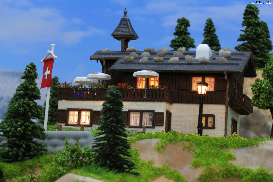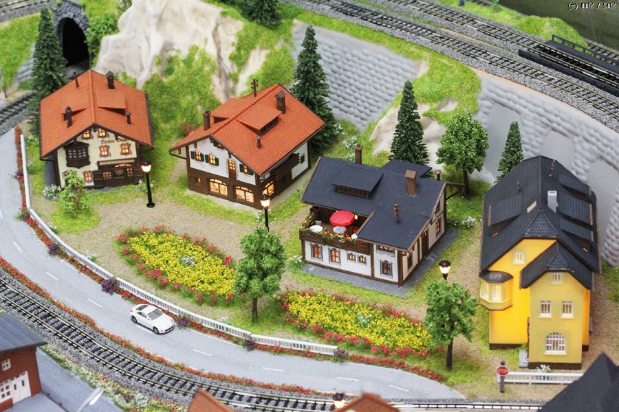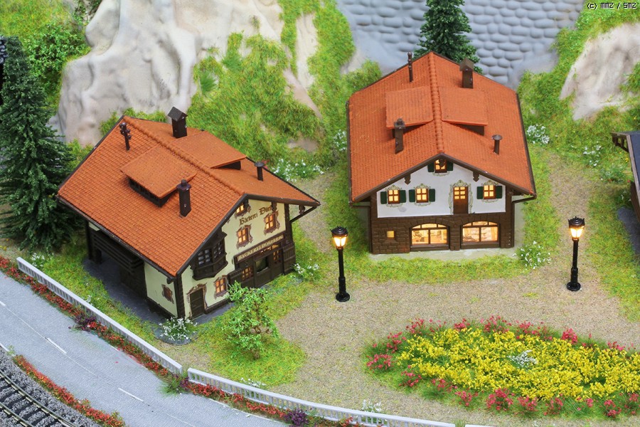 160:1 스케일 Noch layout 으로 구성한 스위스 산악 마을 입니다. 레일은 트랙 배드를 이용하여 기차가 주행시 소음이 없습니다. 집들은 아크릴 물감을 조색하여 모두 붓도장 하였습니다.