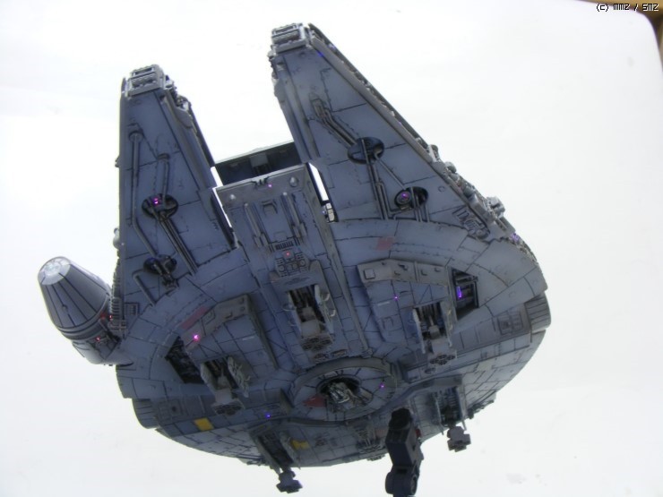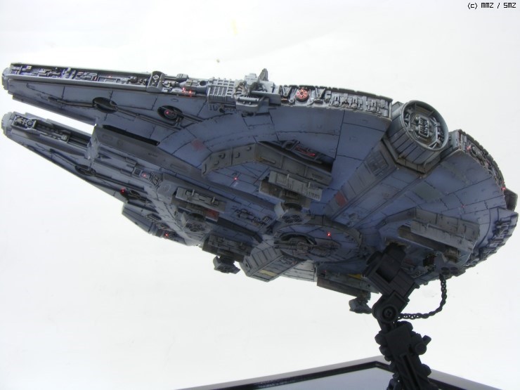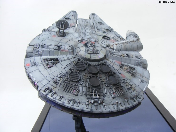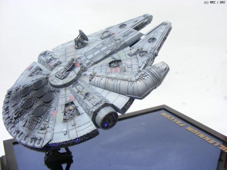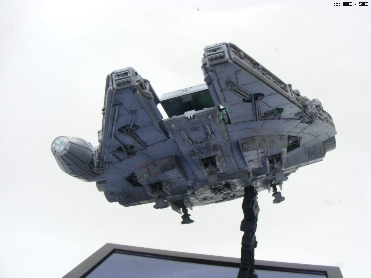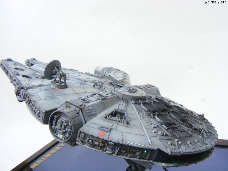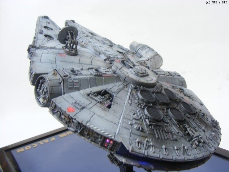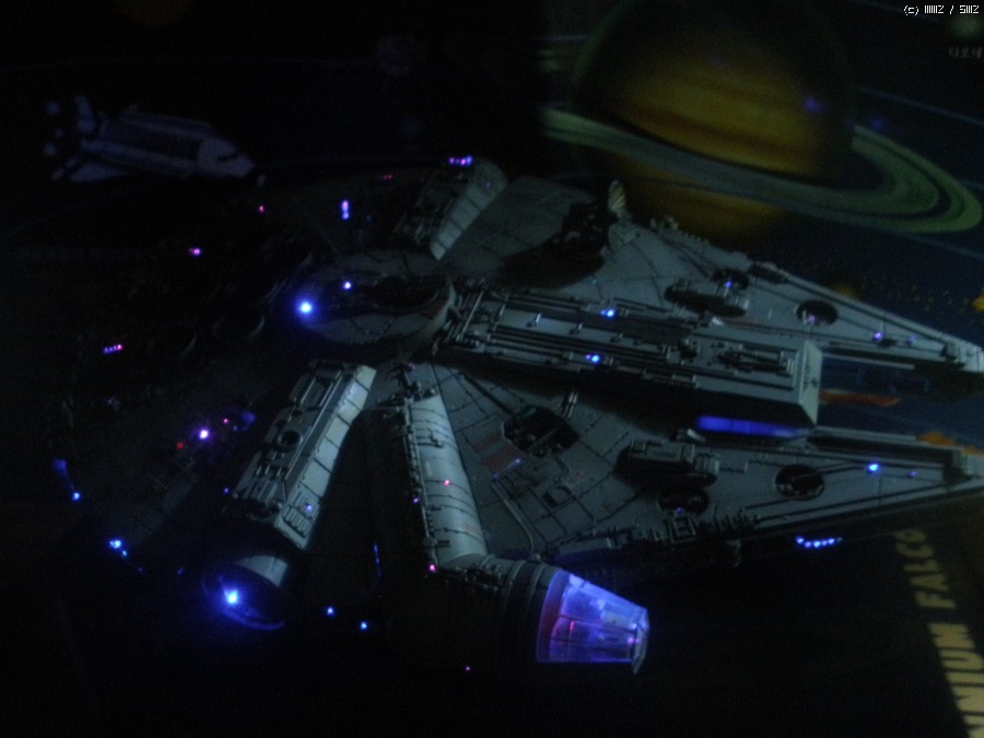 이번 작업은 144 파인몰드 밀레니엄 팔콘 입니다.명품킷 답게 만드는 내내 재미있었던 작업이었습니다. 컨셉은 외향은 오래된 기체이나 우주에서 제일 빠른 우주선 답게였습니다.도색과 함께 LED 작업이 힘들었으며, 말 많은 플라스틱 쪼가리(?) 베이스는 버리고 원목베이스에 반다이 스탠드를 올리도 유리판에 LED가 반사되도록 작업하였습니다.