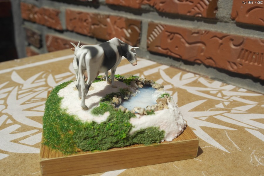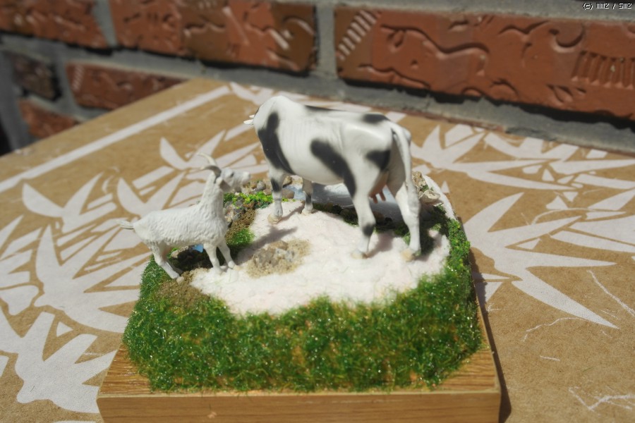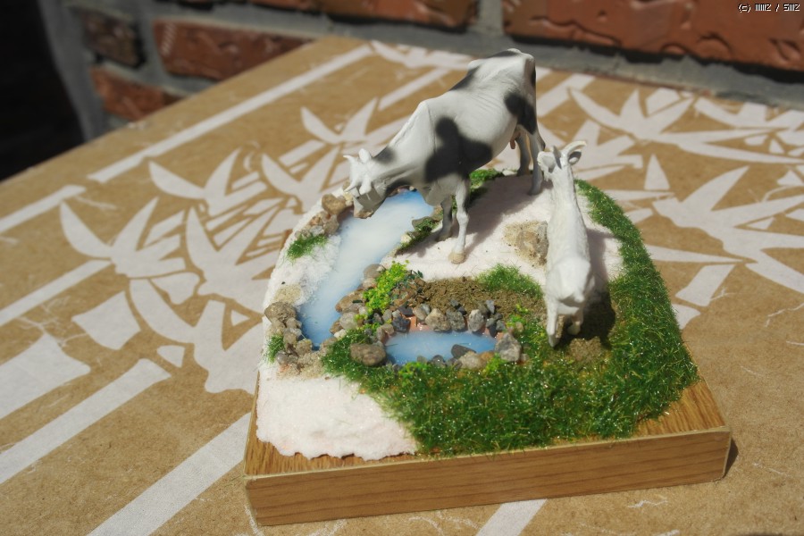 타미야 디오라마 텍스쳐페인트로 흰색은 눈표현이고 녹색은 먹이용풀밭이네요.