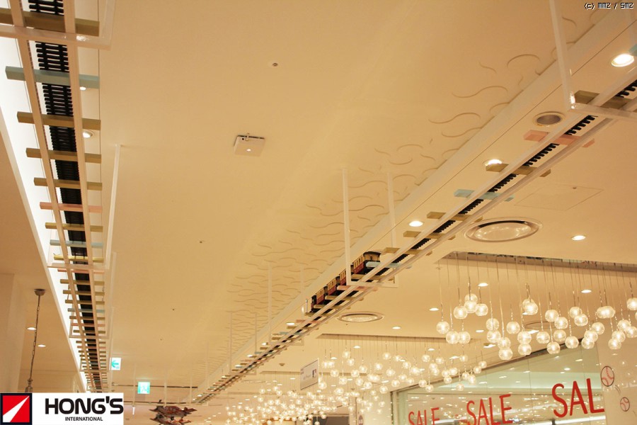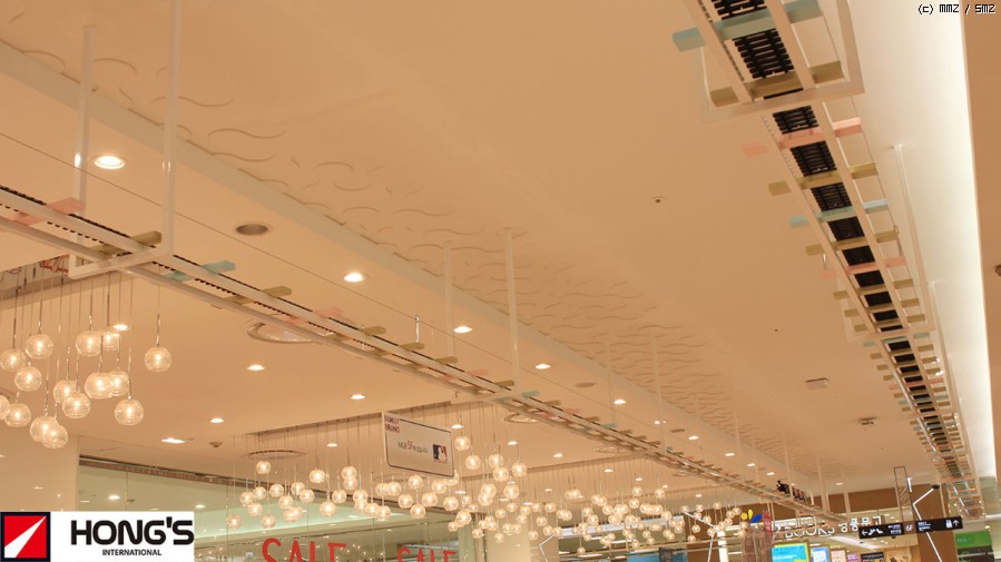 안녕하세요. 오랜만에 인사 드립니다. 저희 홍스가 올해 추진한 프로젝트 중 가장 규모가 크고 여러모로 큰 의미가 있는 롯데백화점 평촌점 실링마운트 기차 프로젝트 입니다. 설치는 백화점 6층 아동복 매장 약 70미터 구간 에 L 자 형태로 이루어져 있습니다.