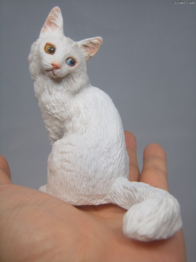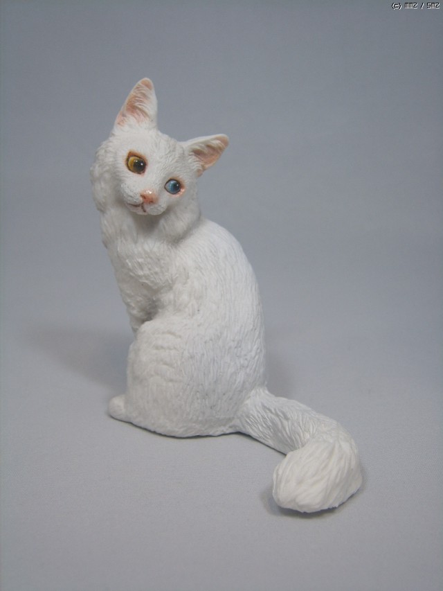 하얀 털에 오드아이로 유명한 터키쉬 앙고라 고양이 피규어를 제작하였습니다.