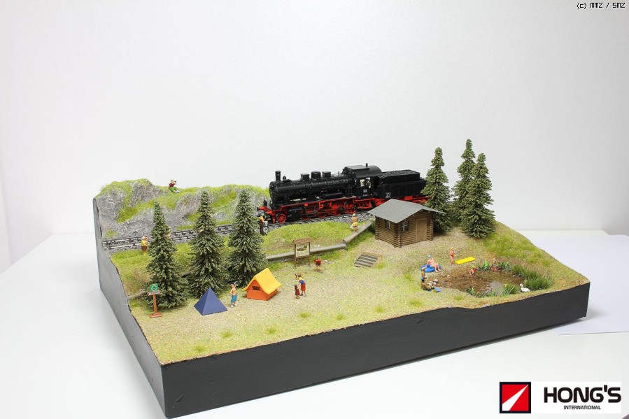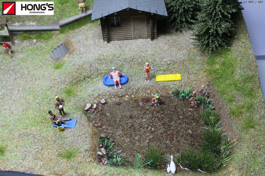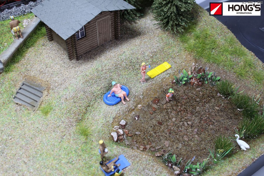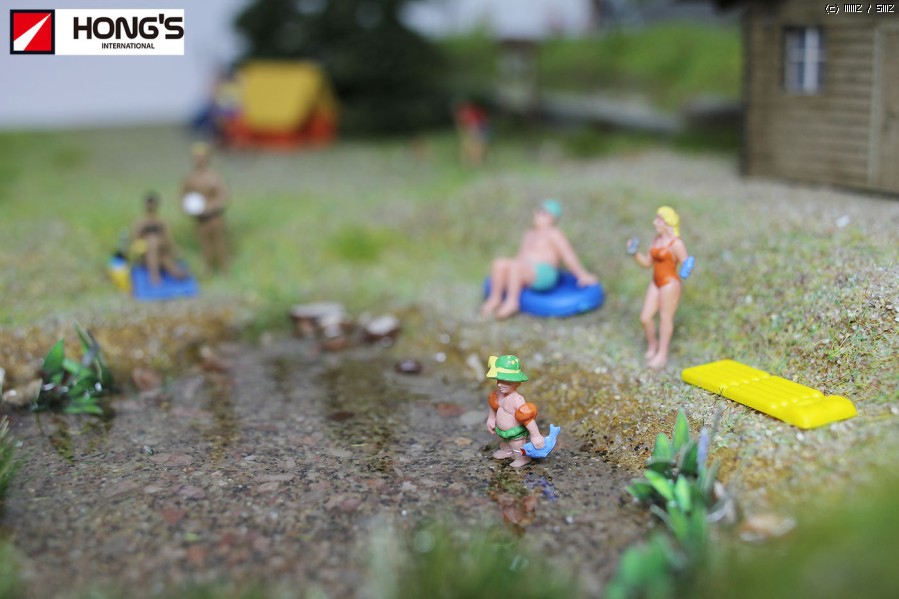 캠핑을 소재로 제작한 디오라마 입니다. 캠핑하는 사람들, 호수에서 물놀이하던 아이와 백조 가족의 만남이 메인테마 입니다.동적요소인 기차를 포함 여름의 모습을 작은 베이스에 담아보았습니다. ^^