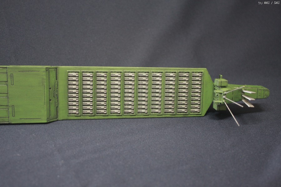 동맹군 항모의 포인트는 바로 동체 하부에 위치한 스파르타니안이라 생각합니다. 총 100기의 반수납된 스파르타이안이 표현되어 있습니다.