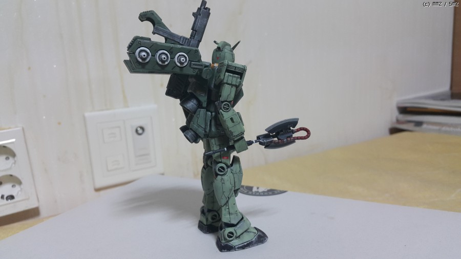 컬러링은 자쿠의 이미지를 차용하여 녹색계열로 하였고, 쉴드의 연방 십자가는 당연히 지웠습니다.