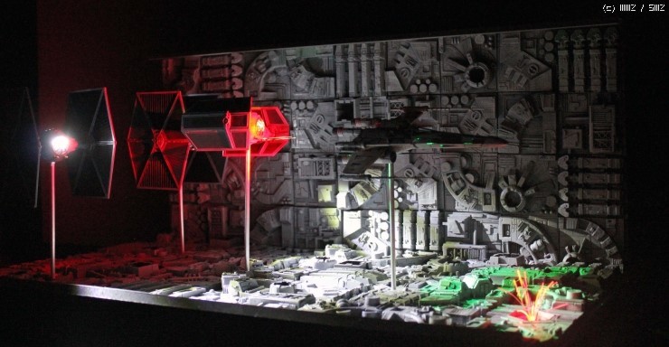 스타워즈 에피소드 4 의 '트렌치 런' 장면을 재현한 디오라마 입니다.