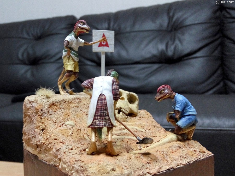 고대 화석앞에서 삽을 사용하는 만행을 저지르고 있습니다.