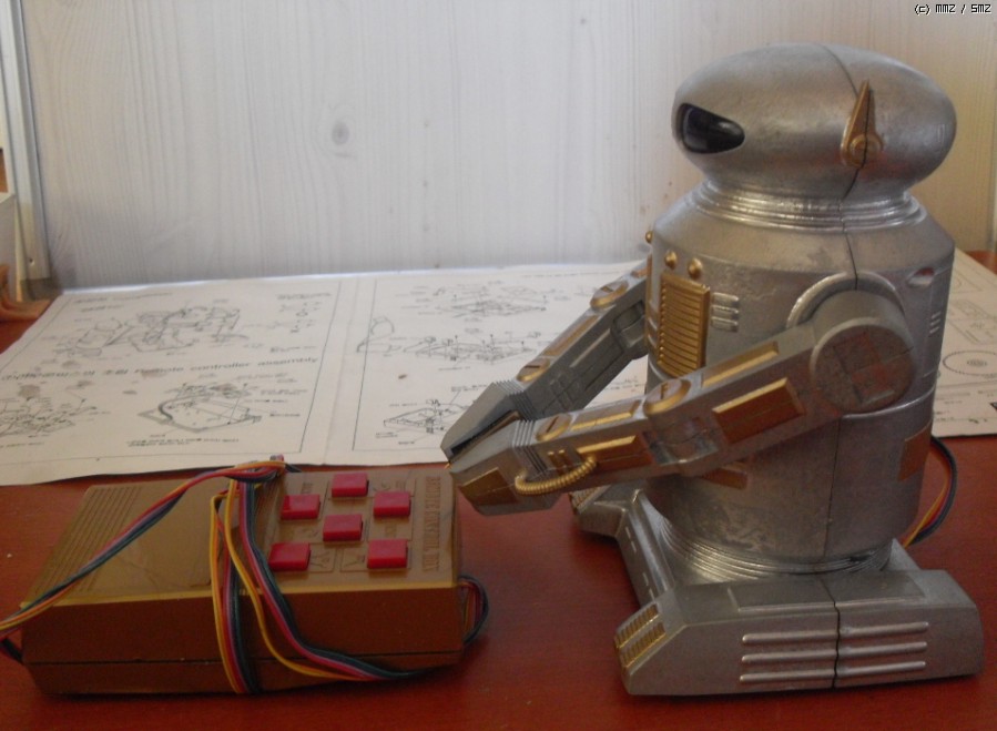 리모콘으로, 전,후진 . 죄회전, 우회전 가동. 손으로 물건 집어 올리고 내리기, 눈에 불 들어오기가 가능합니다. 얼마전 우연히 구해서 조립했습니다. 초등학교때 조립할때는 팔이 잘 안움직였던 기억이 있는데, 조립을 하다보니, 초등학생에건 다소 어렵다는 생각이 들더군요.