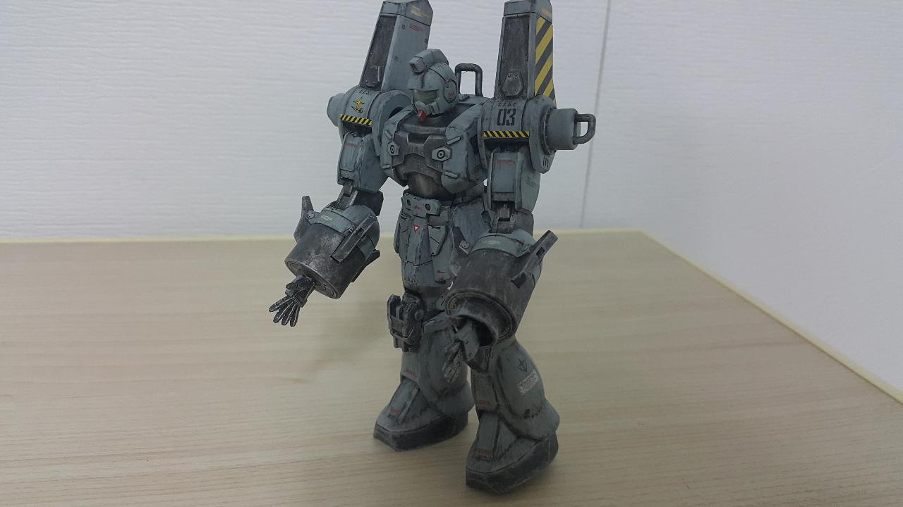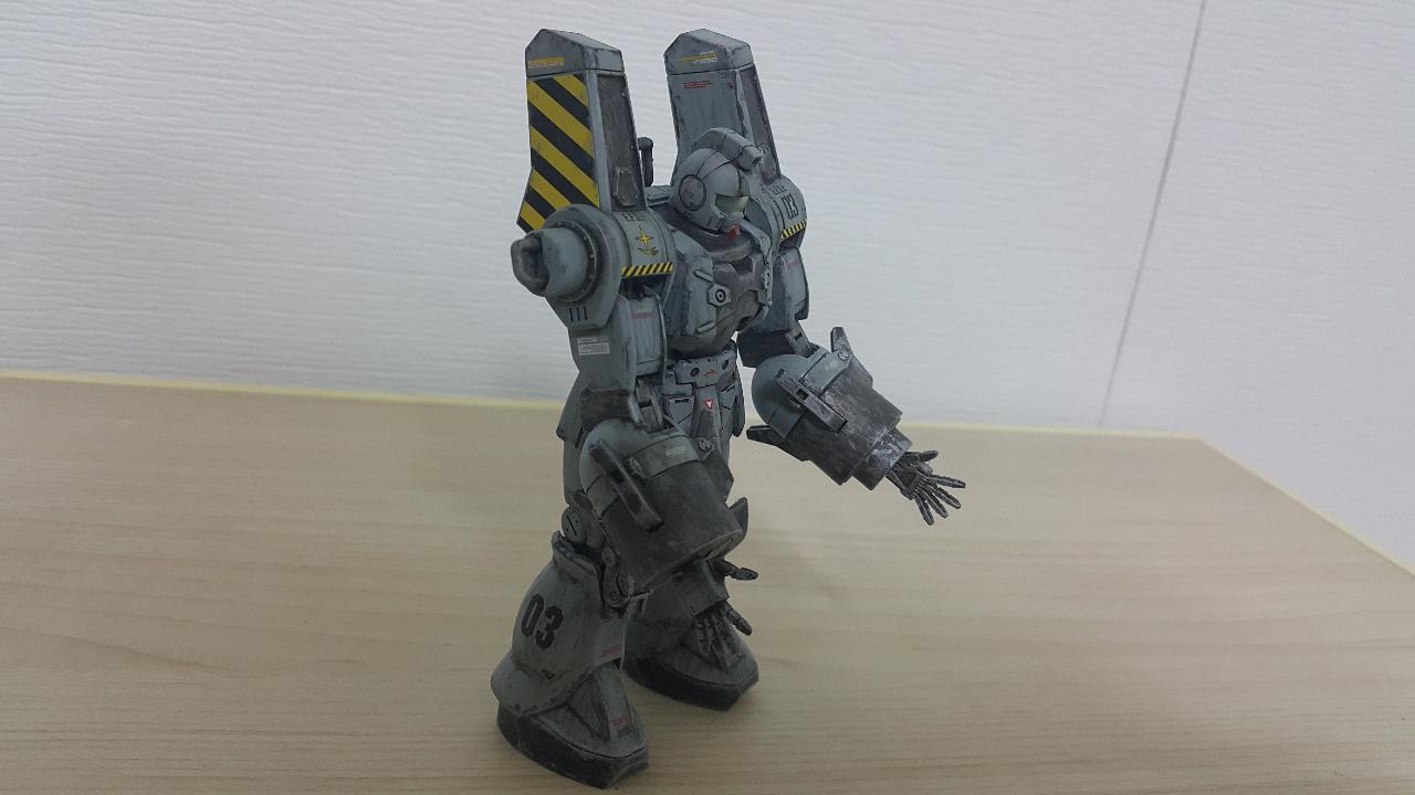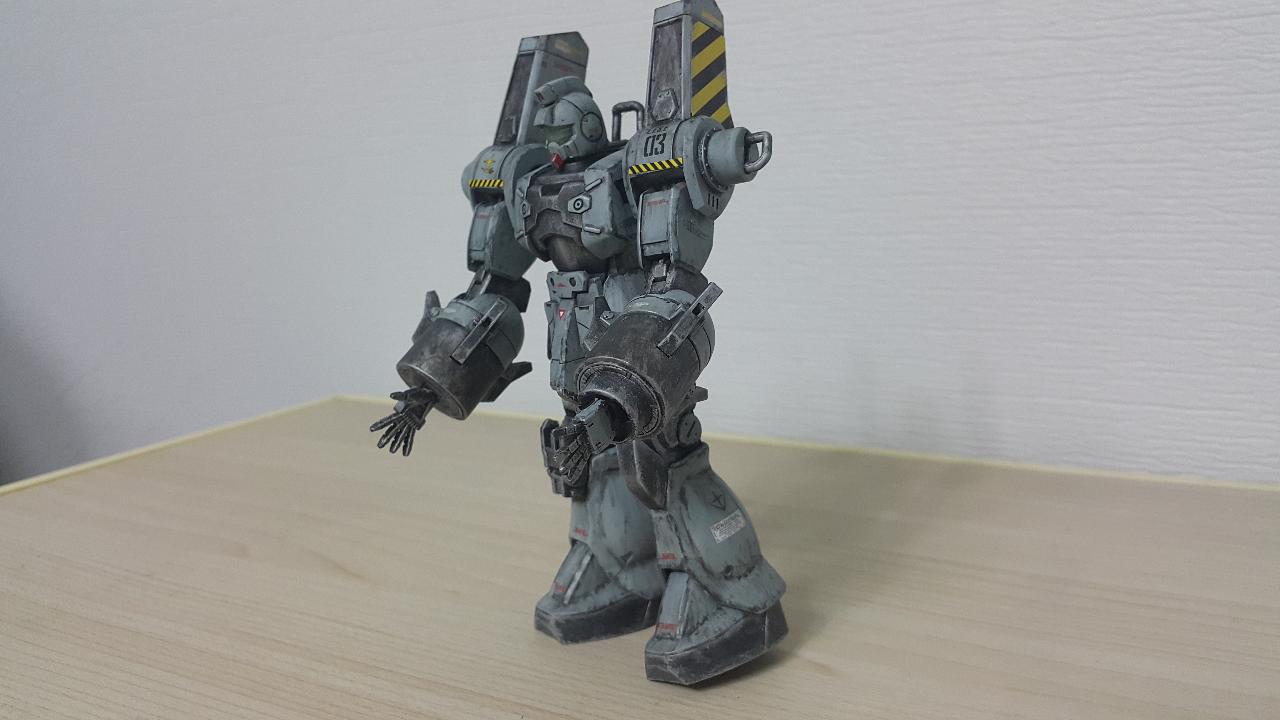최초 색상은 녹색계열 위장색이었는데, 에어브러쉬 작업도중 망쳐 신너로 다 닦아버리고 회색으로 재도색했습니다. 차라리 지금 색깔이 작업용으로 보이는 것 같습니다. 팔과 손동작이 너무 어색해 무엇을 들고 있어야 할지 고민입니다.