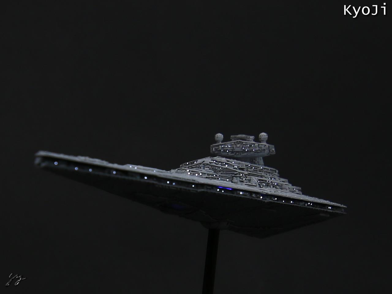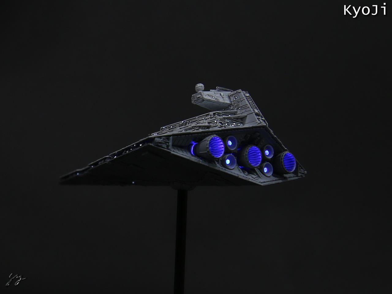 반다이에서 최근 발매한 비클 모델 시리즈 중 하나인 스타스디스트로이어입니다. 이전에 레벨에서 나온 포켓시리즈보다 작은 11.5cm 크기네요. 스타워즈는 뭔가 빛이 나야 영화같은지라 광섬유 작업을 했습니다.