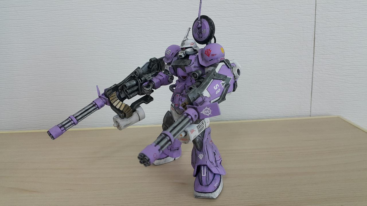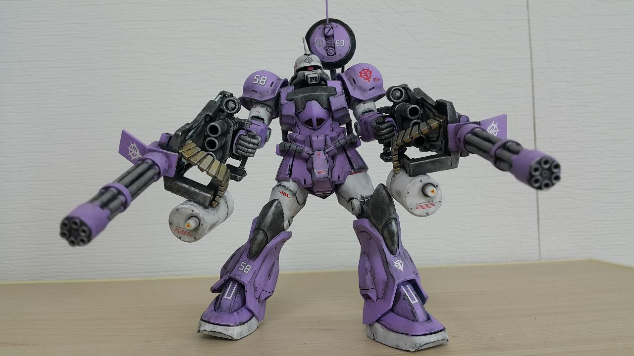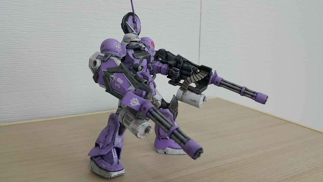 인터넷에 아마도 클럽G한정판으로 보이는 양손에 캐틀링을 든 구프커스텀을 본 적이 있는데, 그것을 모티브삼아 만들어봤습니다.. 그동안 구프커스텀을 만들다보니 남는 방패와 캐틀링건이 있어 수월할 줄 알았는데, 좌측의 캐틀링건을 우측용으로 바꾸는 것이 많이 번거로웠습니다. 근접전용 모빌슈트가 레인지 어택 지원화기로 바꾸다보니 어깨쉴드 스파이크도 없는 자쿠1것으로 교체해주고 레이더도 달아주었습니다. 별 의미는 없지만 그래도 나만의 구프를 만들기위해 머리도 교체했는데 자쿠FZ B타입에 지휘관 안테나를 달아주었습니다.. 색상은 밝은 느낌을 주기위해 노력했는데 이제 스타일이 굳어져버려 과장되고, .지져분하게 되었습니다