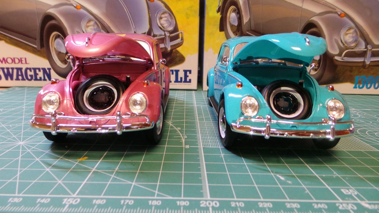 여자친구 선물로 쌍으로 만들어 봤습니다^^. 도색은 타미야 TS-59 (Pearl Light Red) 와 TS-41 (Coral Blue) 입니다.