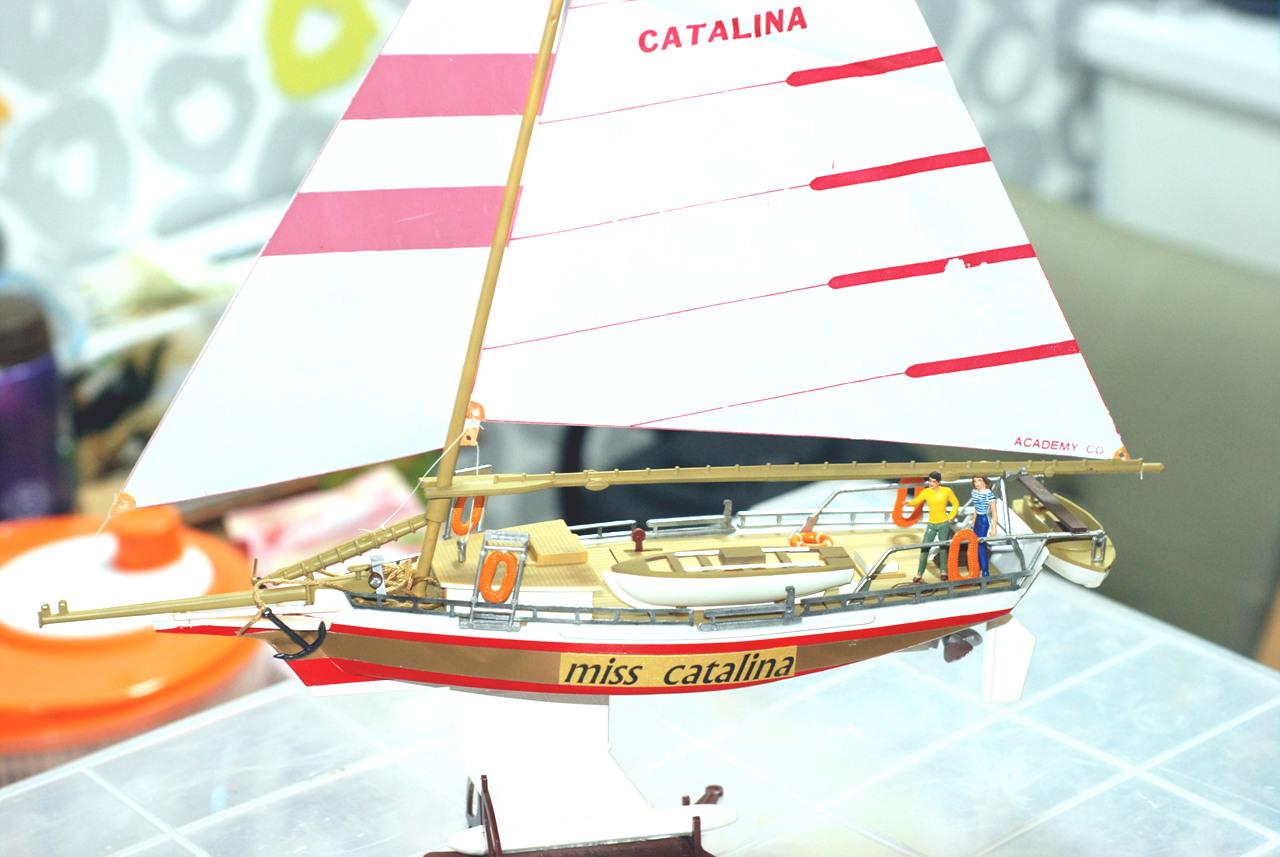 배와 장식대가 결합하는 부분은 추가 들어 있습니다. 실제 요트도 이렇게 생겨서 요트 바닥이 좁음에도 오뚜기처럼 바람에 잘 전복되지 않지요. 교과서에 이런 내용은 없지만 카탈리나를 중학교때 만들어봐서 저는 그때부터 이 사실을 알았네요. (그래서 프라모델이 예전 과학교재라고 불린 이유도 어느정도 타당하다고 생각합니다.)