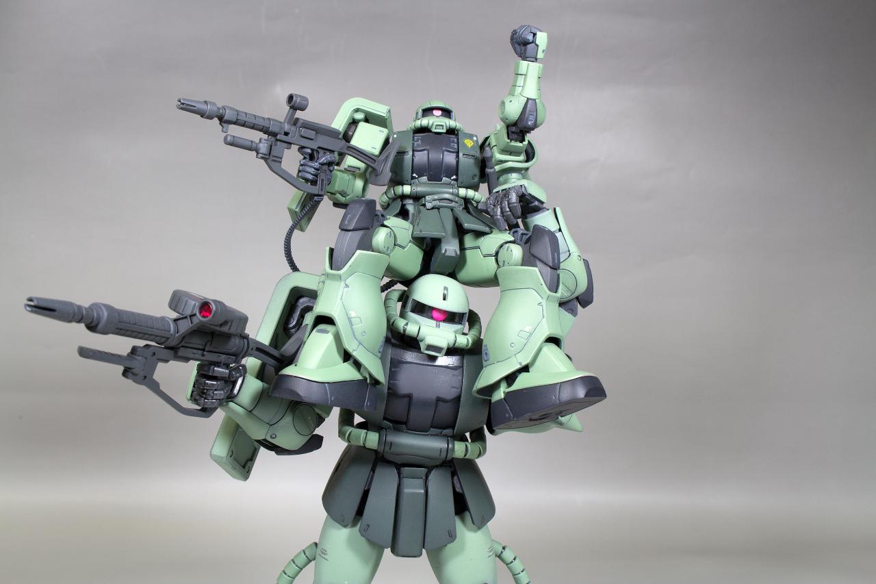 아직 제품으로 나오지 않았기 때문에 샤아전용 자쿠2 2개를 섞어서 완성했습니다.