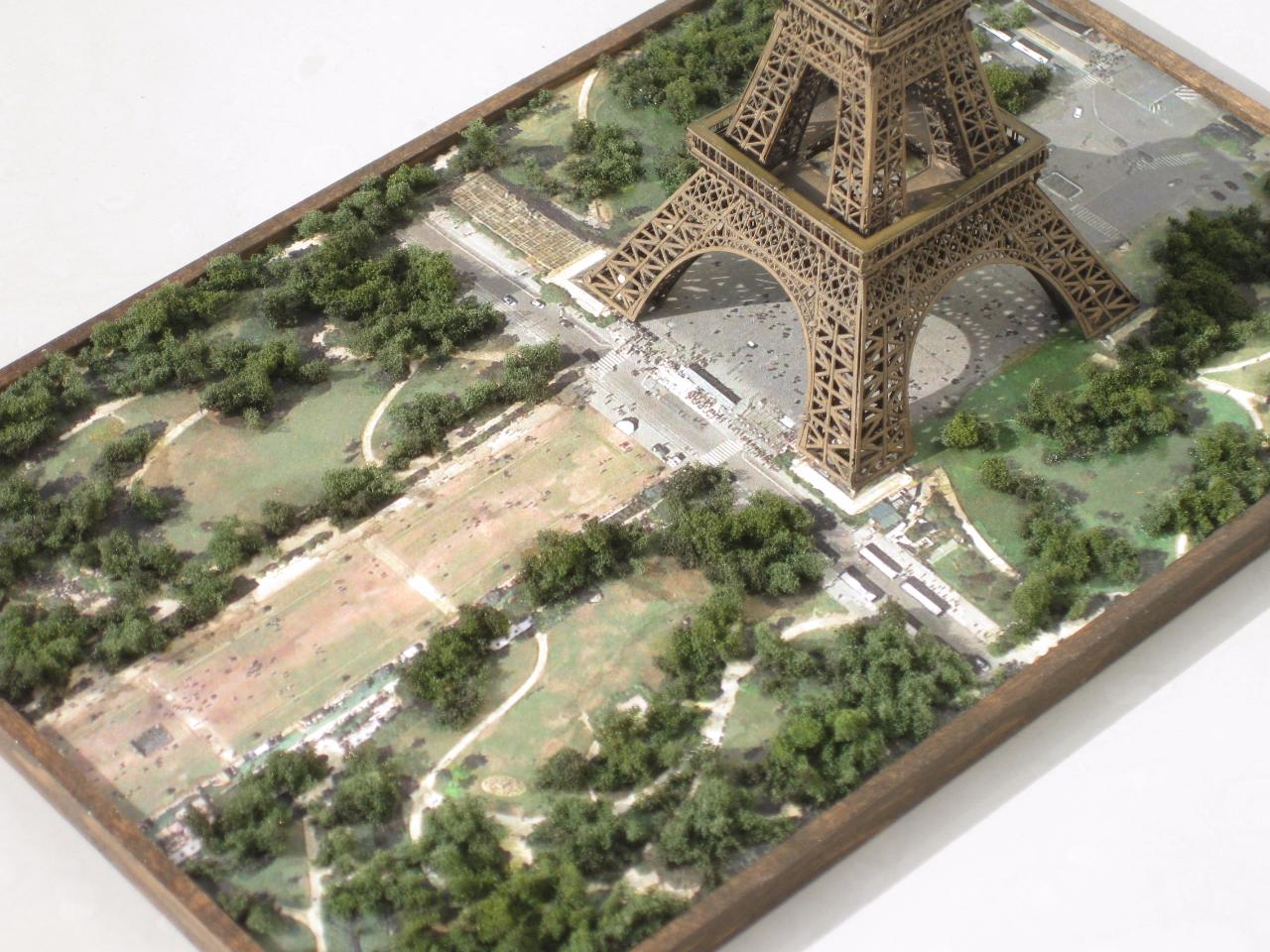 베이스는 구글 위성사진을 캡쳐한 뒤 포토샵으로 에펠탑을 잘 지워주고 출력했습니다. 무광 마감제를 뿌려서 번들거리는 느낌을 없애면 꽤 좋은 효과의 베이스가 됩니다.