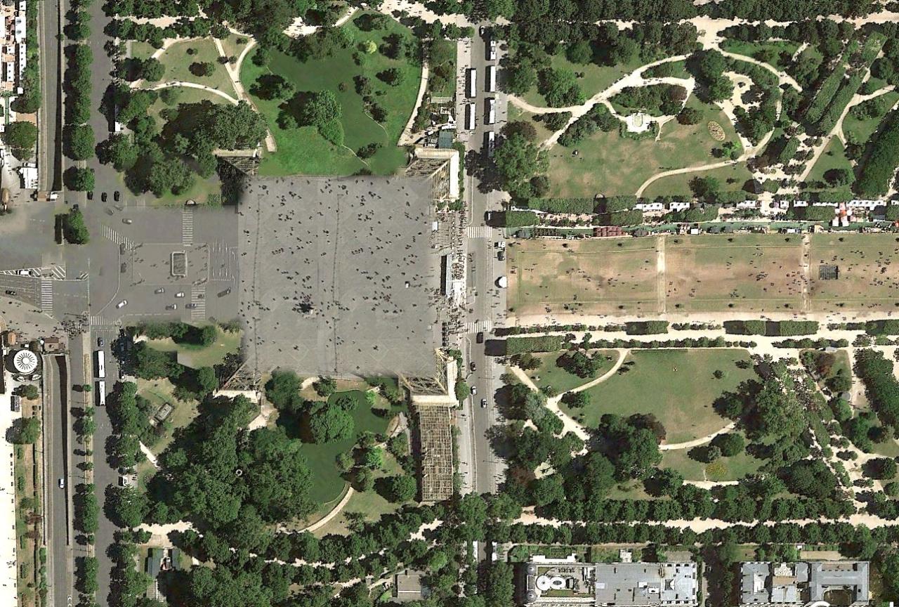 위성사진에서 포토샵으로 에펠탑과 그림자를 지운 이미지입니다.