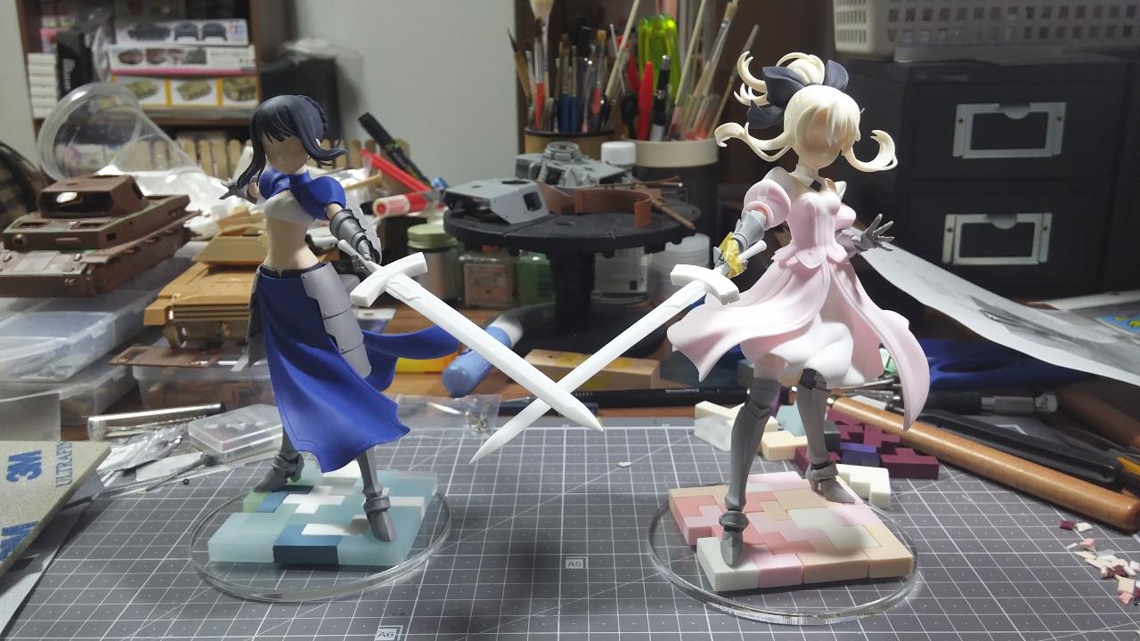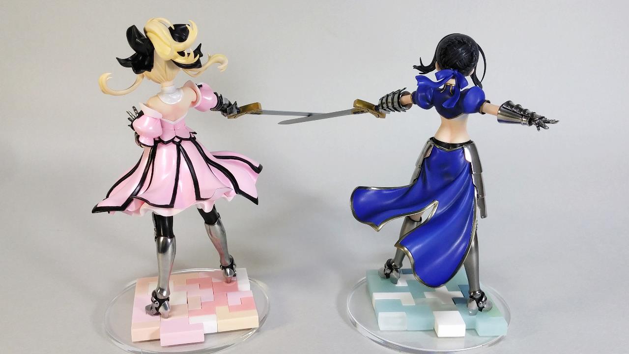 페이트 시리즈의 외전격인 프리즈마/이리야에 등장하는 이리야 & 미유의 세이버 인스톨 버전 피규어입니다.