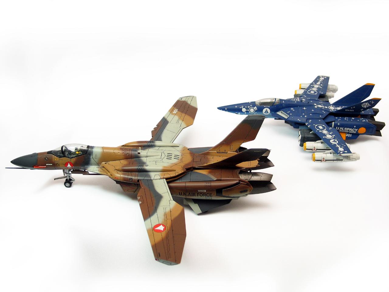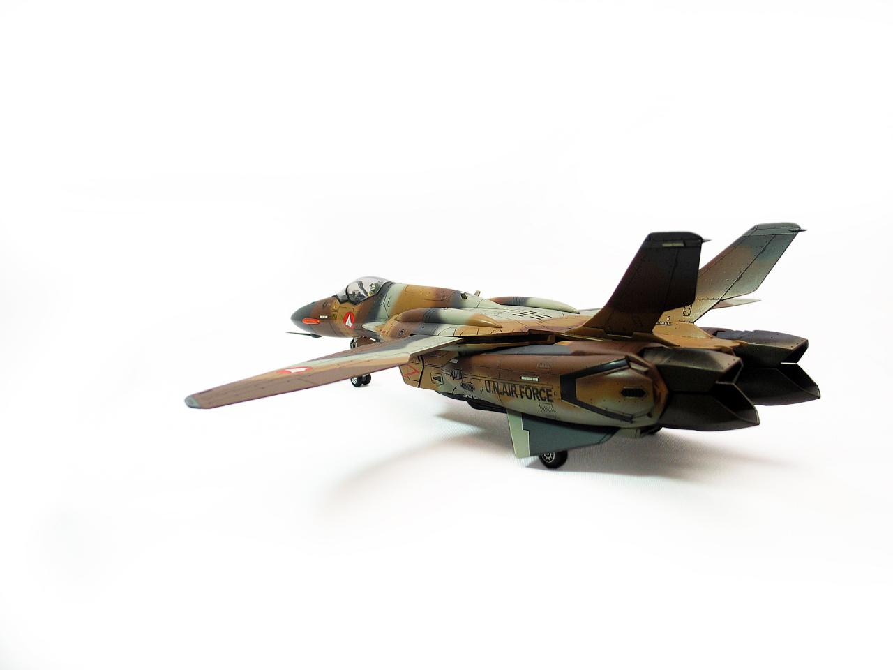 하세가와 1/72 키트 그대로이고 위장무늬만 임의로 넣은 것입니다. 통합전이 끝나고 VF-1이 배치되기 시작할 무렵에 에이스 양성용으로 오래된 기체들이 전용될 수도 있지 않을까 하는 상상을 해봤습니다.