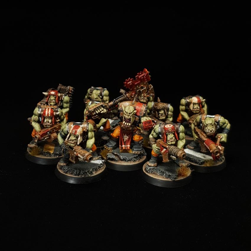 지난 번에 작업한 오크 보이즈 무리(Boyz Mob)들의 리더인 보스 놉(Boss Nob) 둘을 작업했습니다.