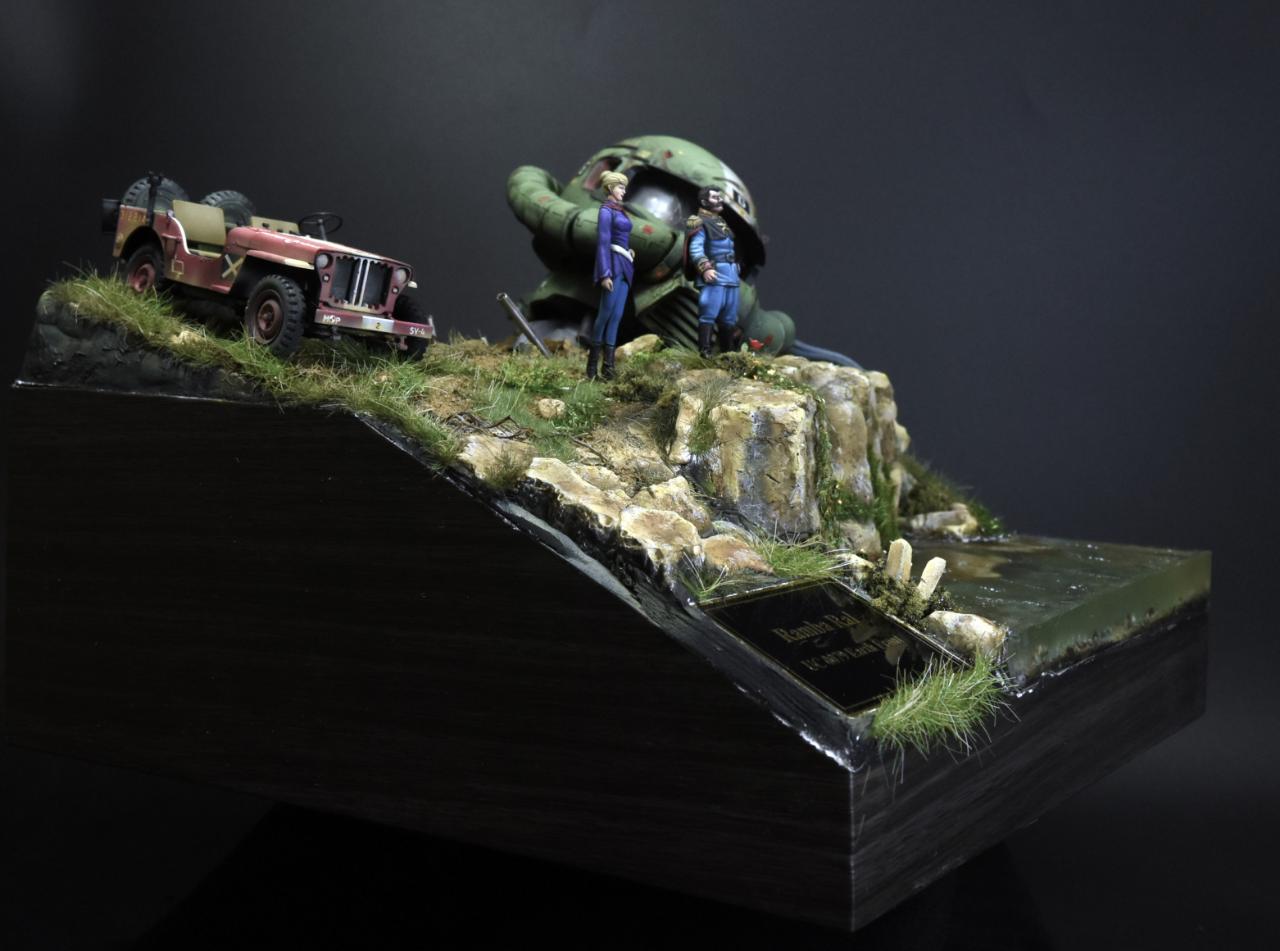 물표현제는 에폭시라이닝을 사용하였고 자쿠헤드는 락카기본도색에 아크릴과 유화등을 이용하였으며 인형들은 아크릴로 도색하였습니다