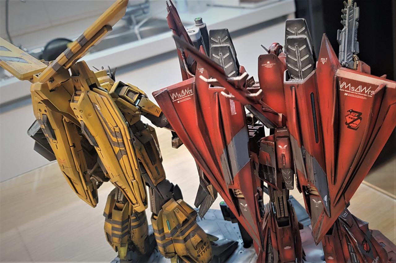 도색은 그레이 제타의 경우 오렌지 옐로우 그대로 썼고, 레드제타는 좀 칙칙하고 무게감 있어 보이려고, 빨간색에 회색과 옐로우를 조금 섞었습니다. 데칼은 둘다 별매 데칼을 이것저것 섞어 사용했습니다.