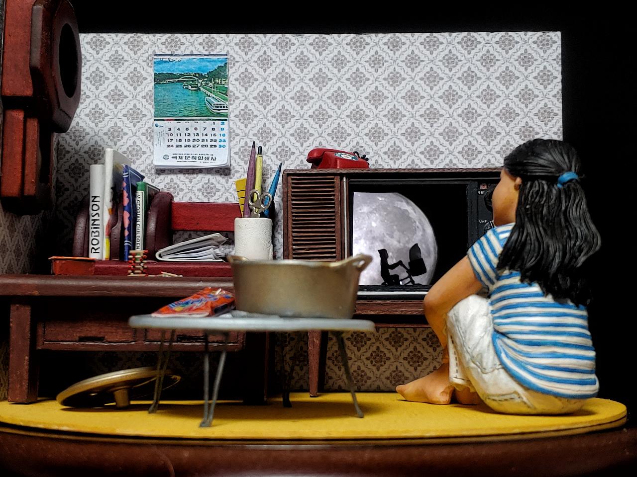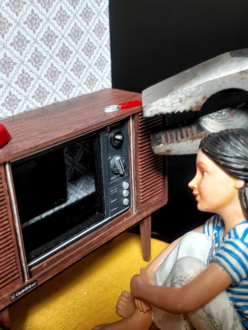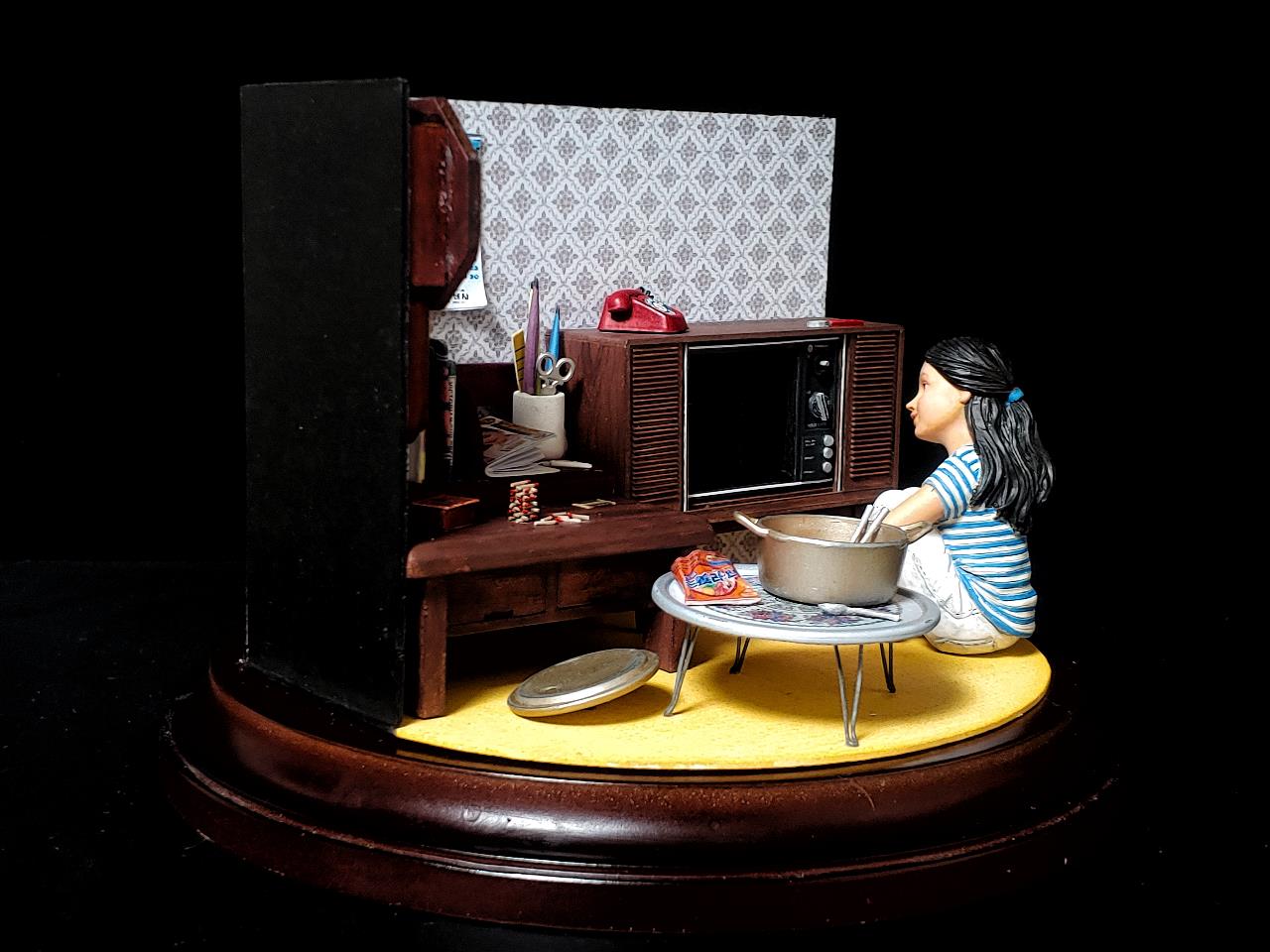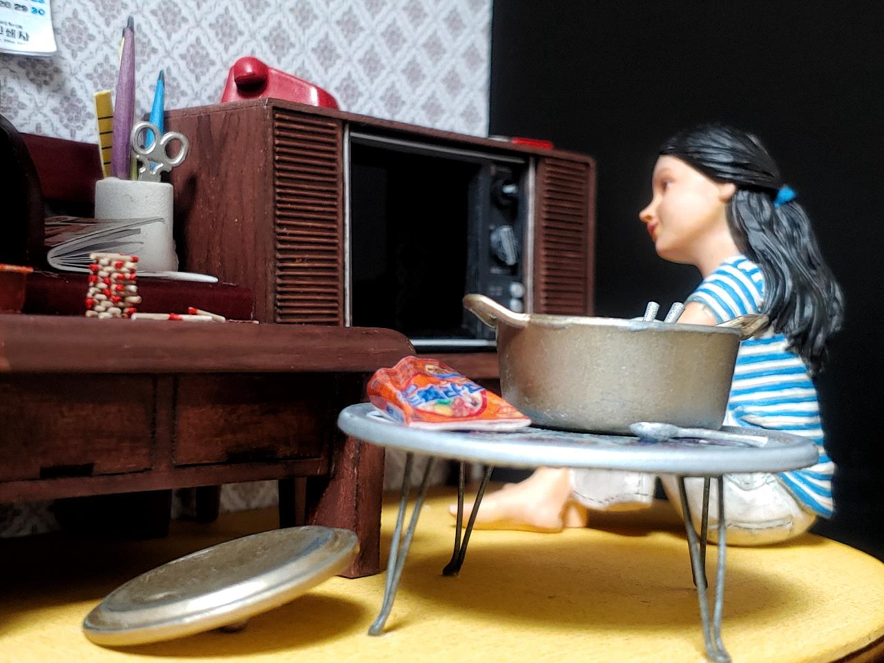 방 한구석에서 티비를 보고 있는 어여쁜 소녀.