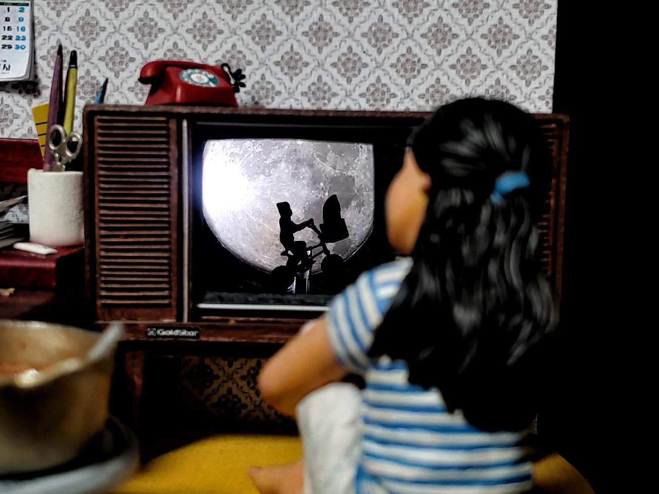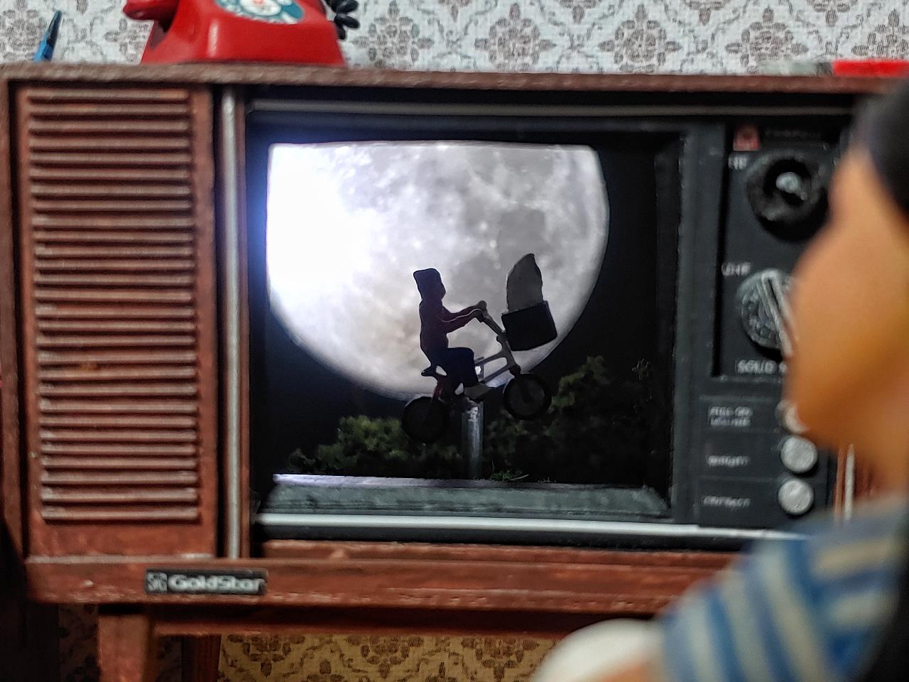 SF영화 E.T에서 자전거를 타고 하늘로 날으는 유명한 장면이죠. E.T가 국내에 개봉한게 84년이지만 공중파로 전송한 것은 수년 후였던 거 같습니다..
