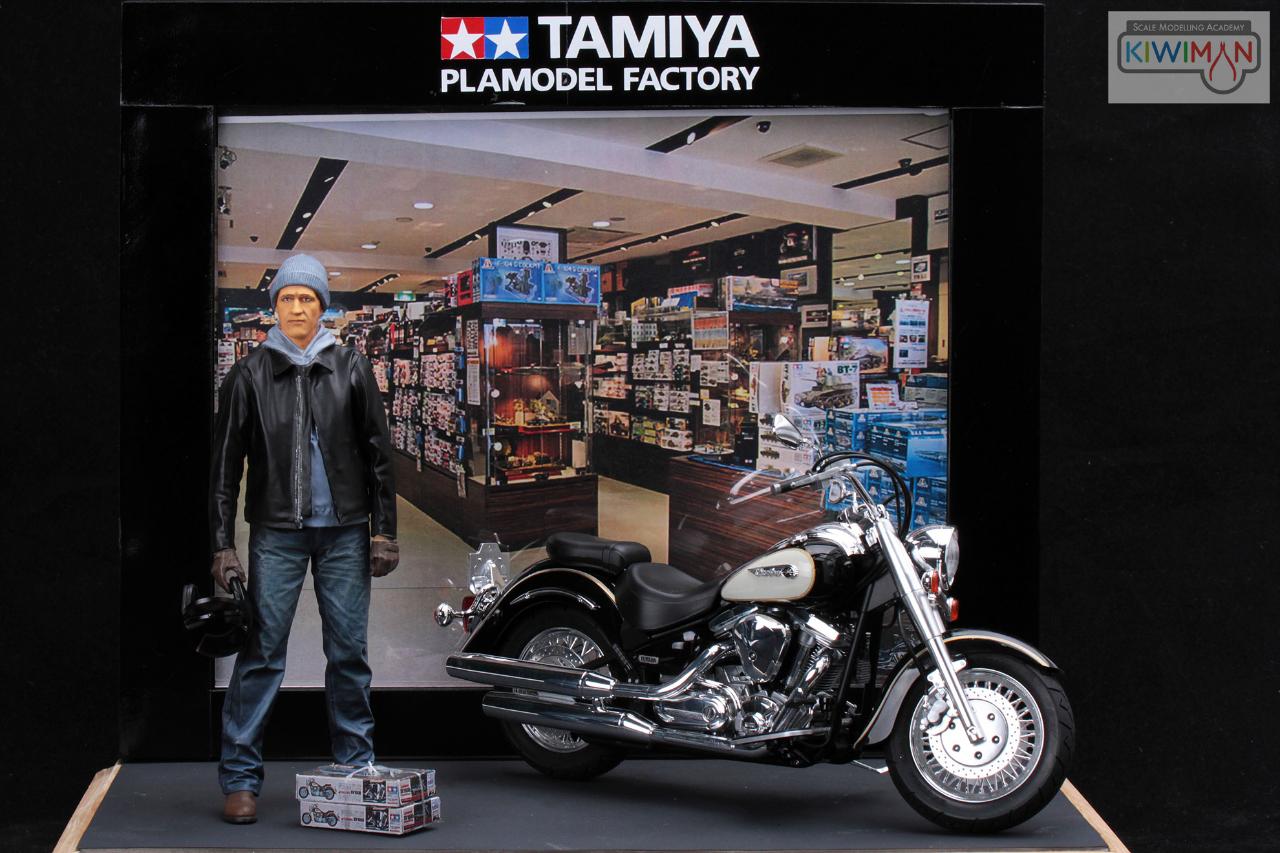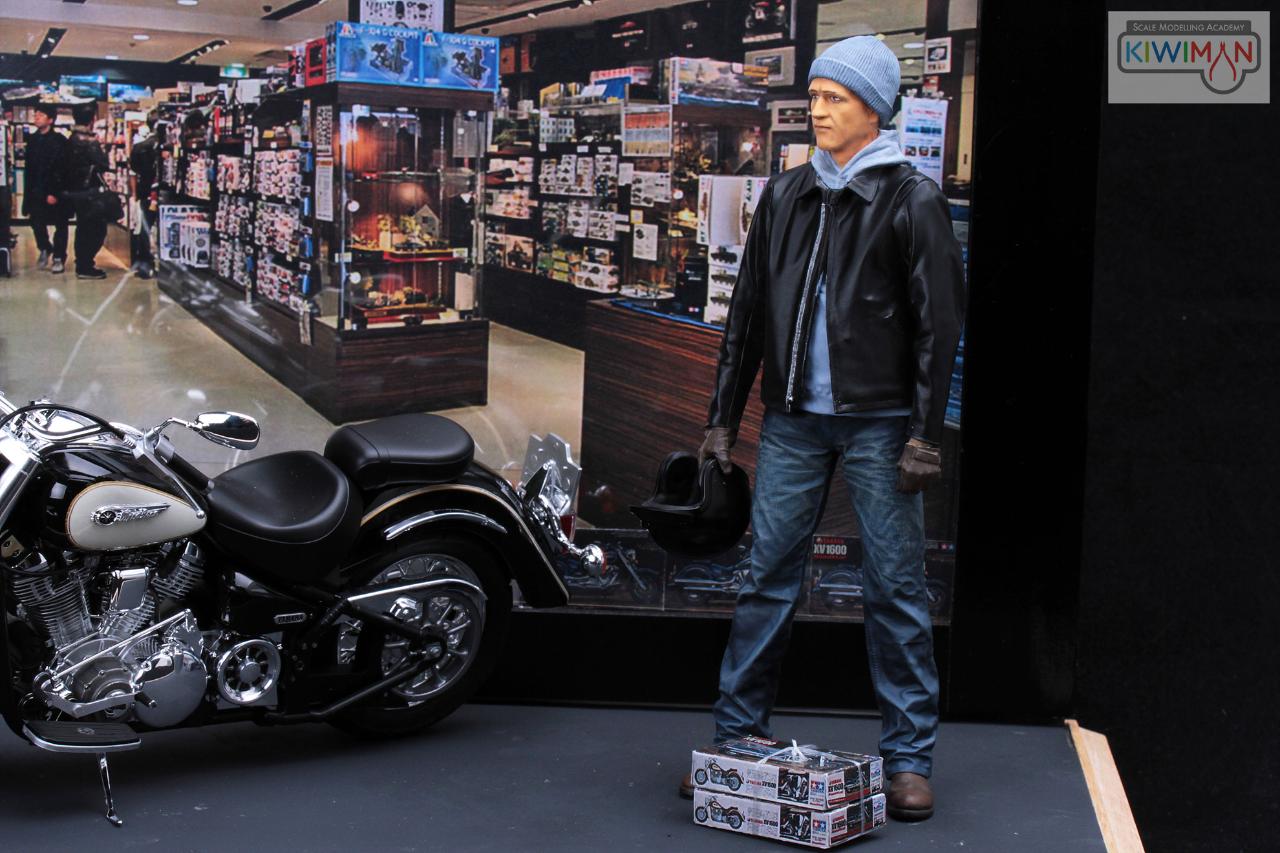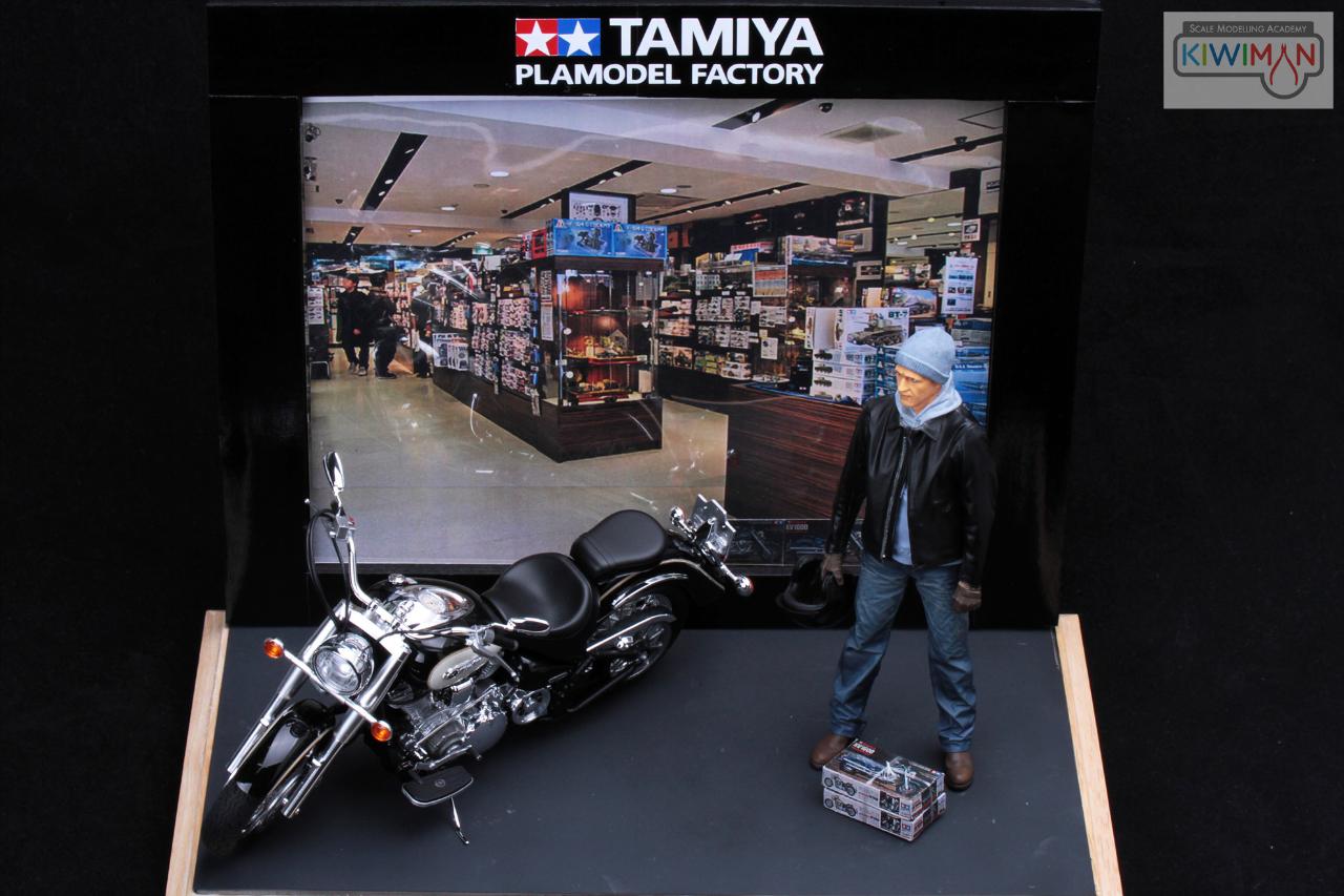 먼저 완성한 XV1600 바이크에 인형과 베이스 추가했습니다. 타미야 모형점에서 자신이 타고 온 XV1600의 키트를 구입한 설정입니다.