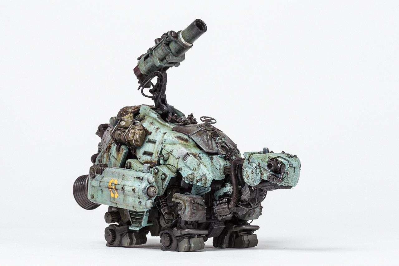 몇달전 열렸던 조이드 와일드 개조 컨테스트에 출품했던 가논터스-터틀로버 입니다. 원형에 목을 길게 늘려주었고 Ma.K를 좋아하는 취향을 반영해 하드한 웨더링을 해주었습니다. 황량한 사막지대를 떠돌아 다니며 전투에 임하는 방랑거북이 컨셉입니다.