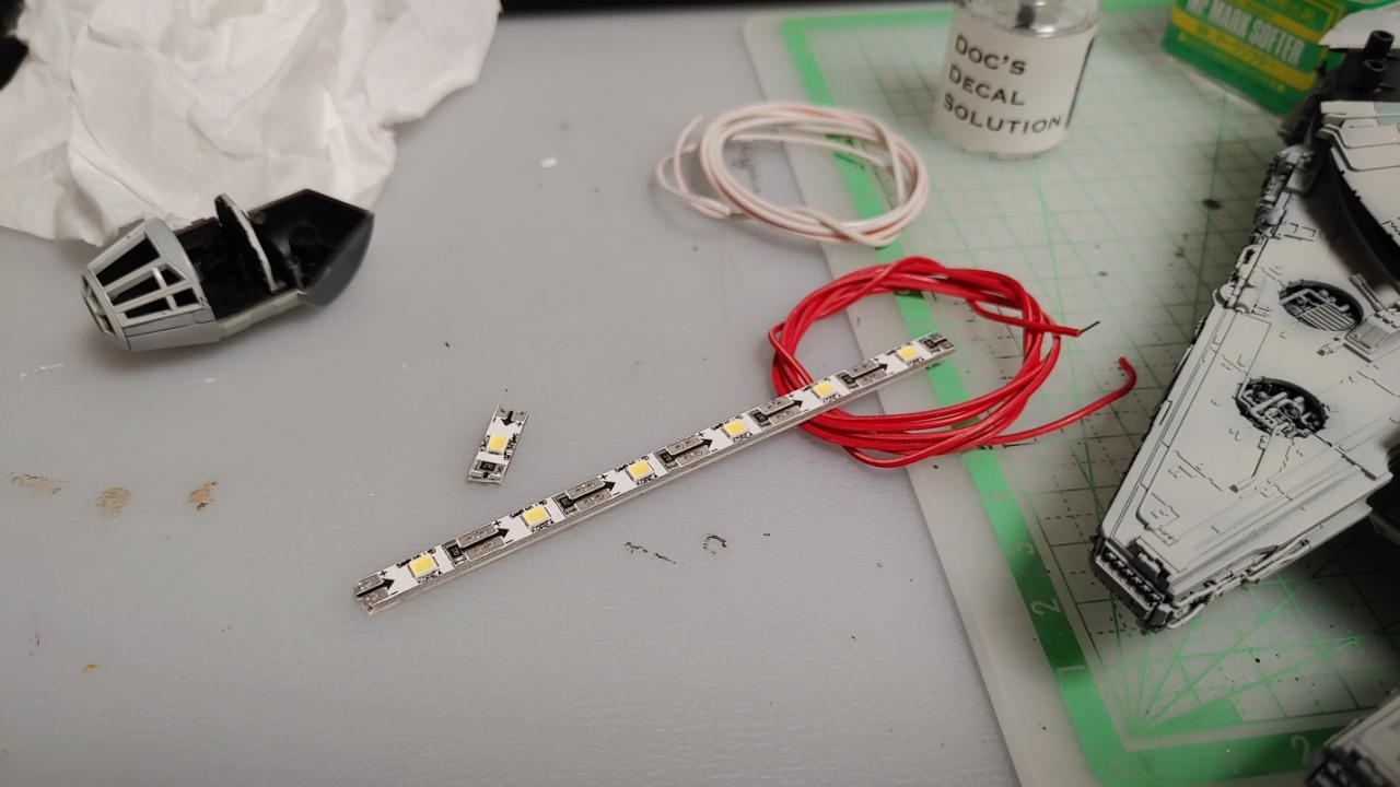 추진부는 5볼트 LED바 주광색을, 조종석은 전구색을 잘라서 이식해 봤습니다...