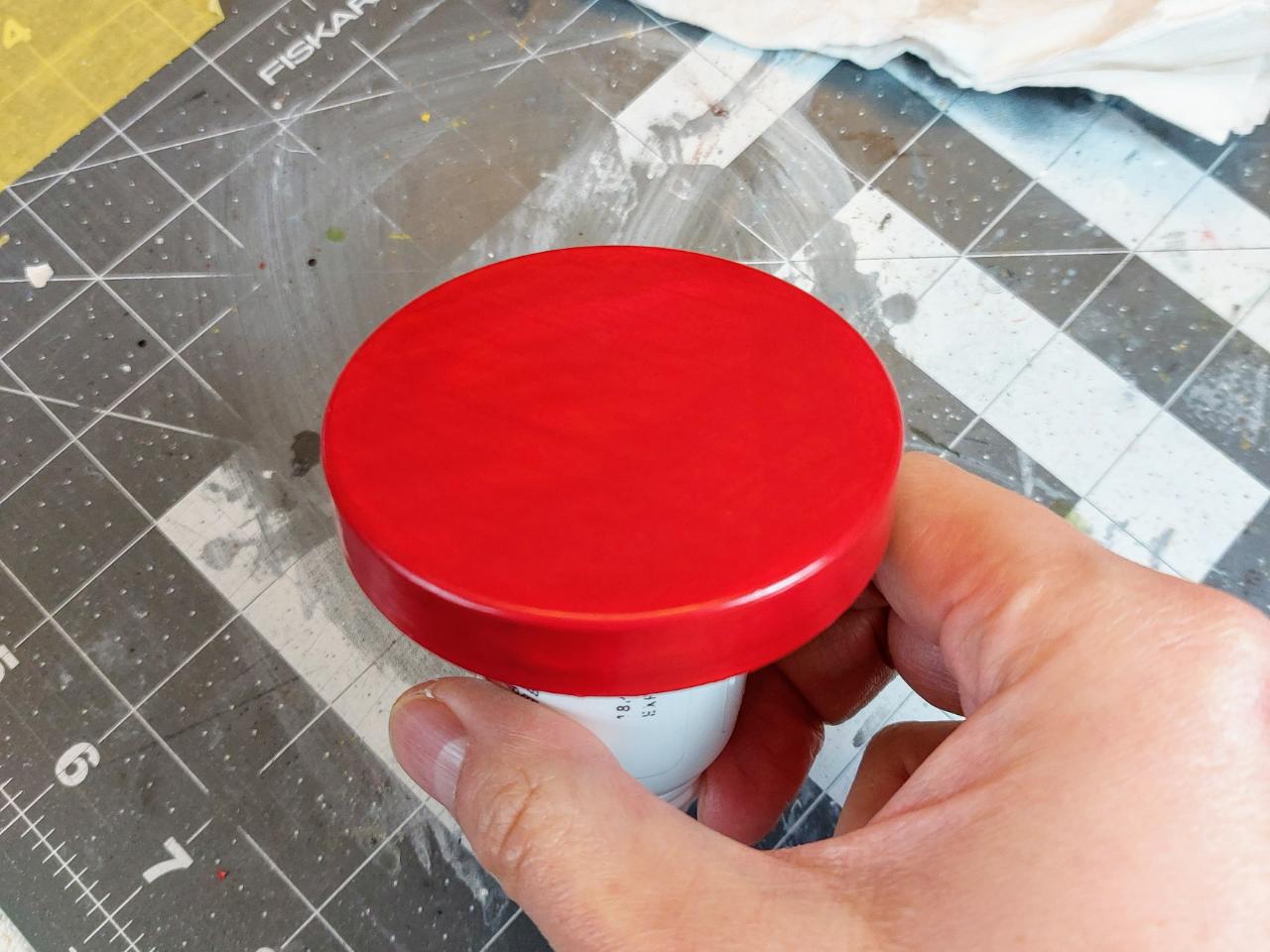 과일차가 담겨 있던 플라스틱 뚜껑을 적당히 사포로 문질러서 표면을 거칠게 만들었습니다. (일종의 물사포질 비슷)