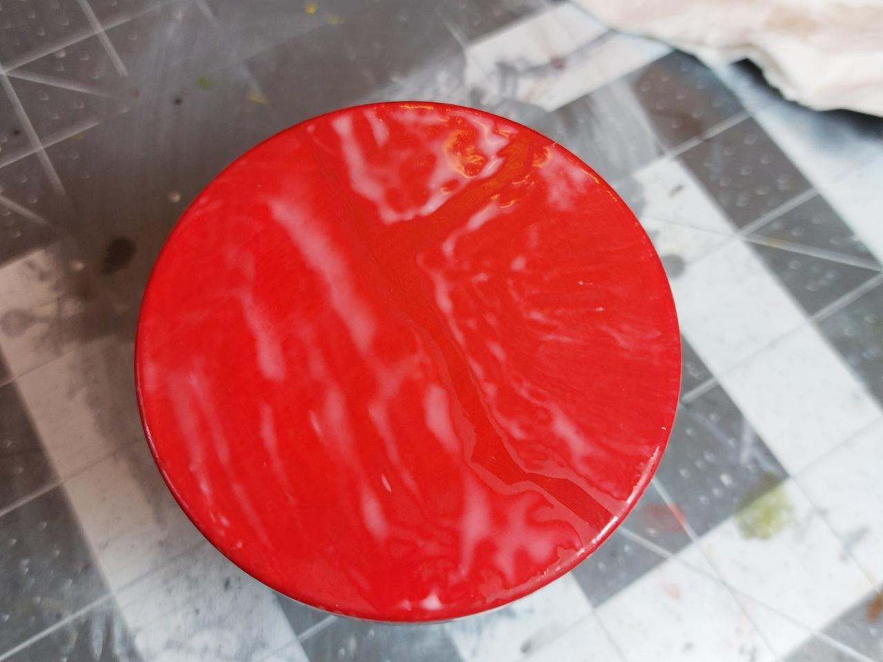 회색 프라이머를 먼저 올리고, 빨강색, 그리고 유광 바니쉬로 마감을 했습니다.