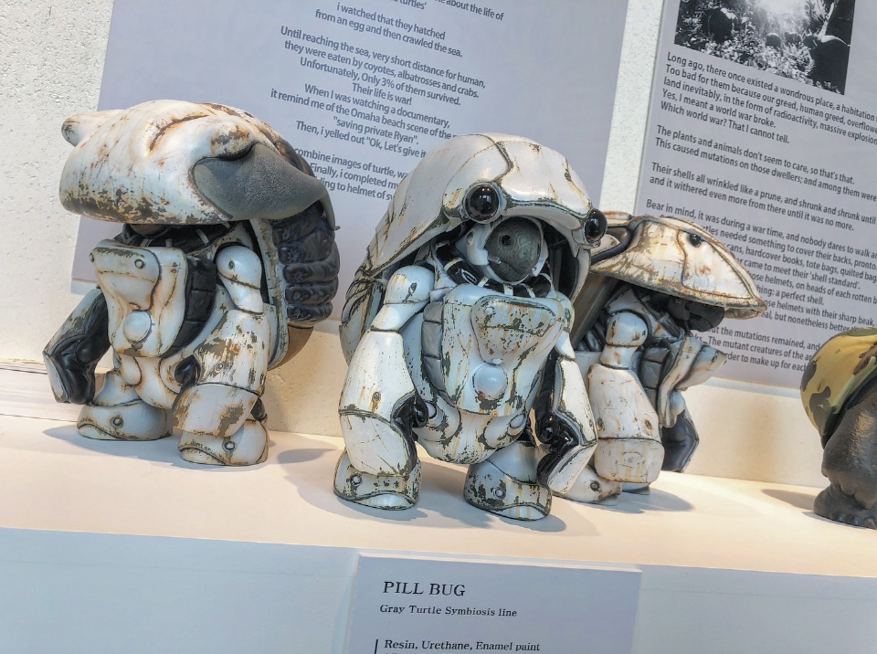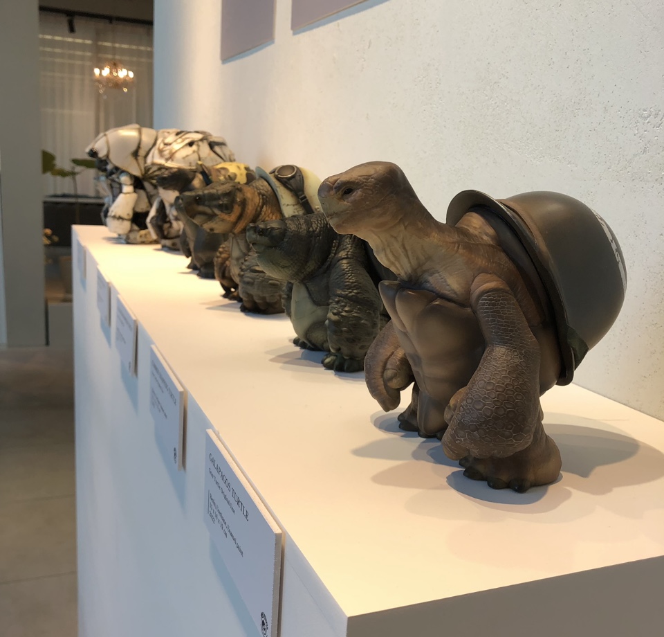저번 게시물의 우주복 버전에서 진화된 ‘공생’ 과 관련된 디자인 3종을 추가 하였고, 알다브라,갈라파고스,악어,늑대 거북 4종도 전시 중입니다