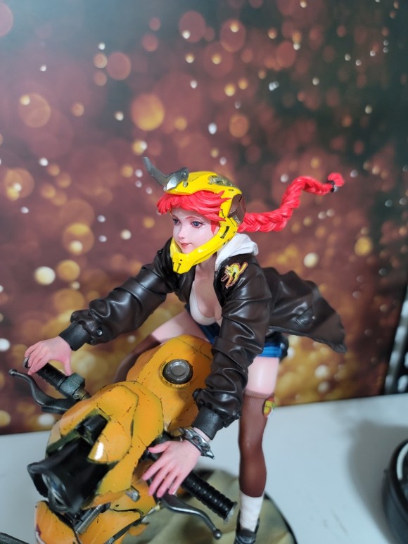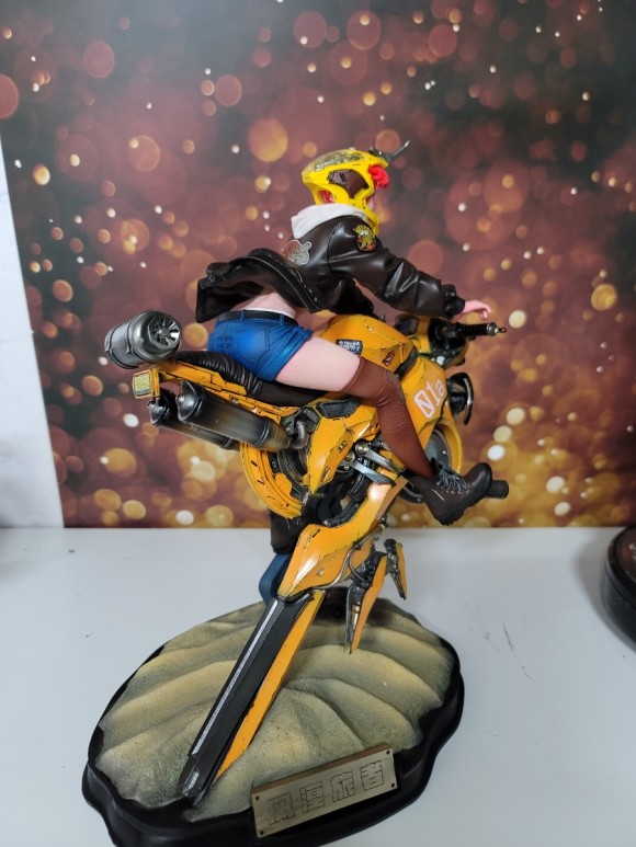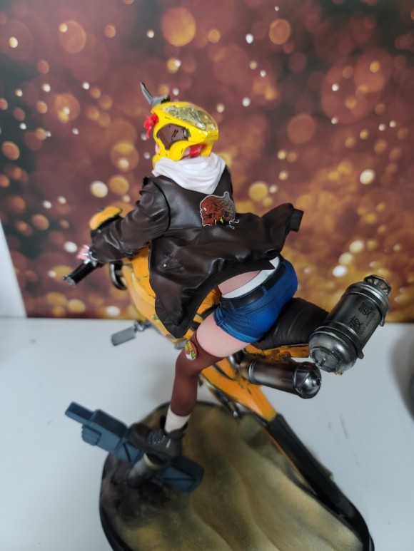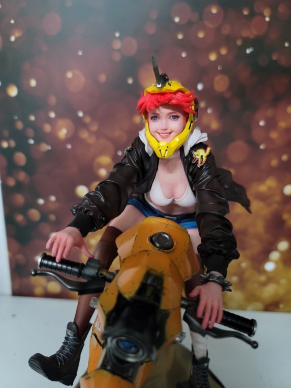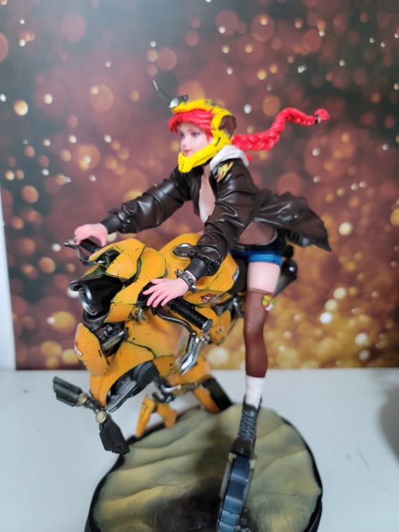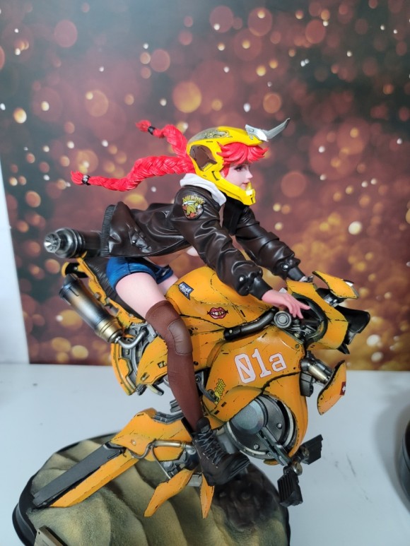 라이더 여성의 동적인 표현 뿐아니라 바이크 조형 또한 멋지죠