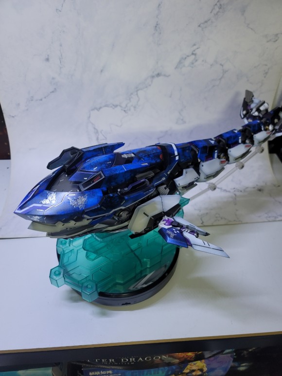 메탈릭 도색에 바다의 느낌을 전달하기 위한 도색 적용 및 은장 무늬 습식데칼등을