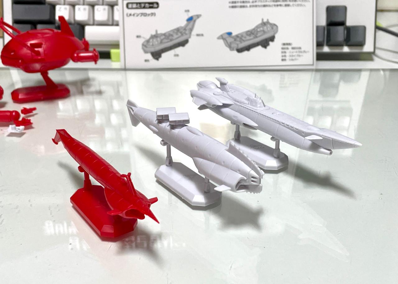킷이 총 4가지가 들어 있는데 가고일 함선만 각 2대씩 다른 색상으로 포함되어 있습니다.