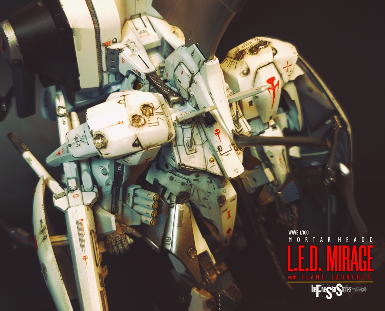 WAVE사 나가노마모루가 창조한 세계관 FSS(파이브스타스토리)에 등장하는 모터헤드 중 레드미라지 풀사양 버전이라고 불리우는 플레임 런처를 장착시켜 1/100인젝션 프라모델로 출시했었는데요. 최근에는 보크스사의 레드미라지 인페르노네이팜이란 이름으로 동일한 사양이 존재합니다. 물론 인페르노네이팜이 더 세련되게 리파이닝 되어져 있습니다. 인페르노 네이팜이 나오기 전까지는 WAVE사 플레임런처가 레드미라지 사양에선 최고였던 셈이죠.