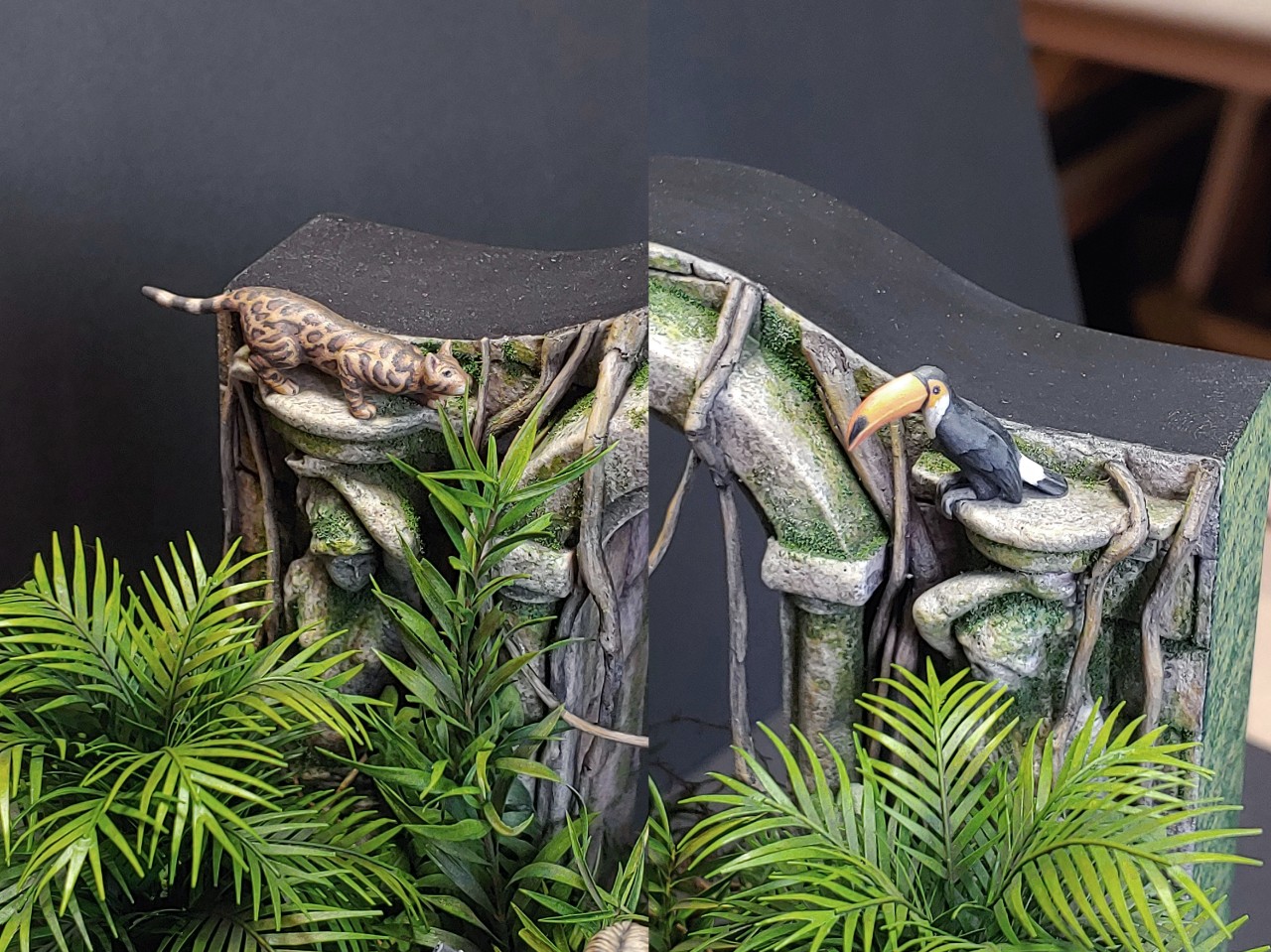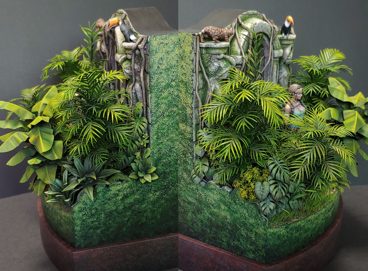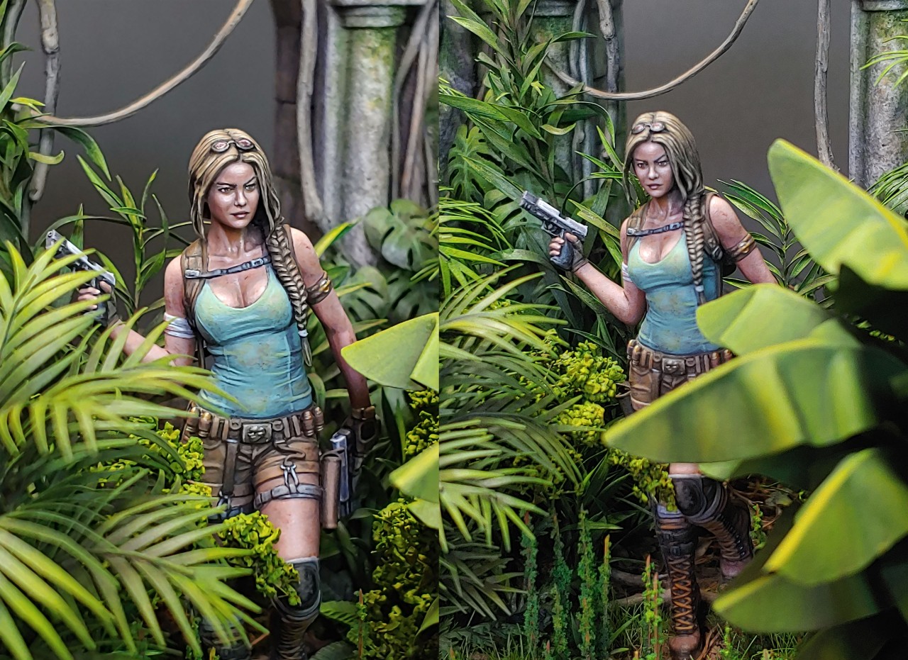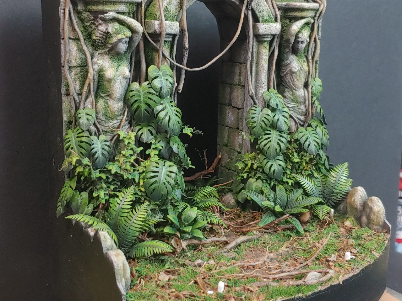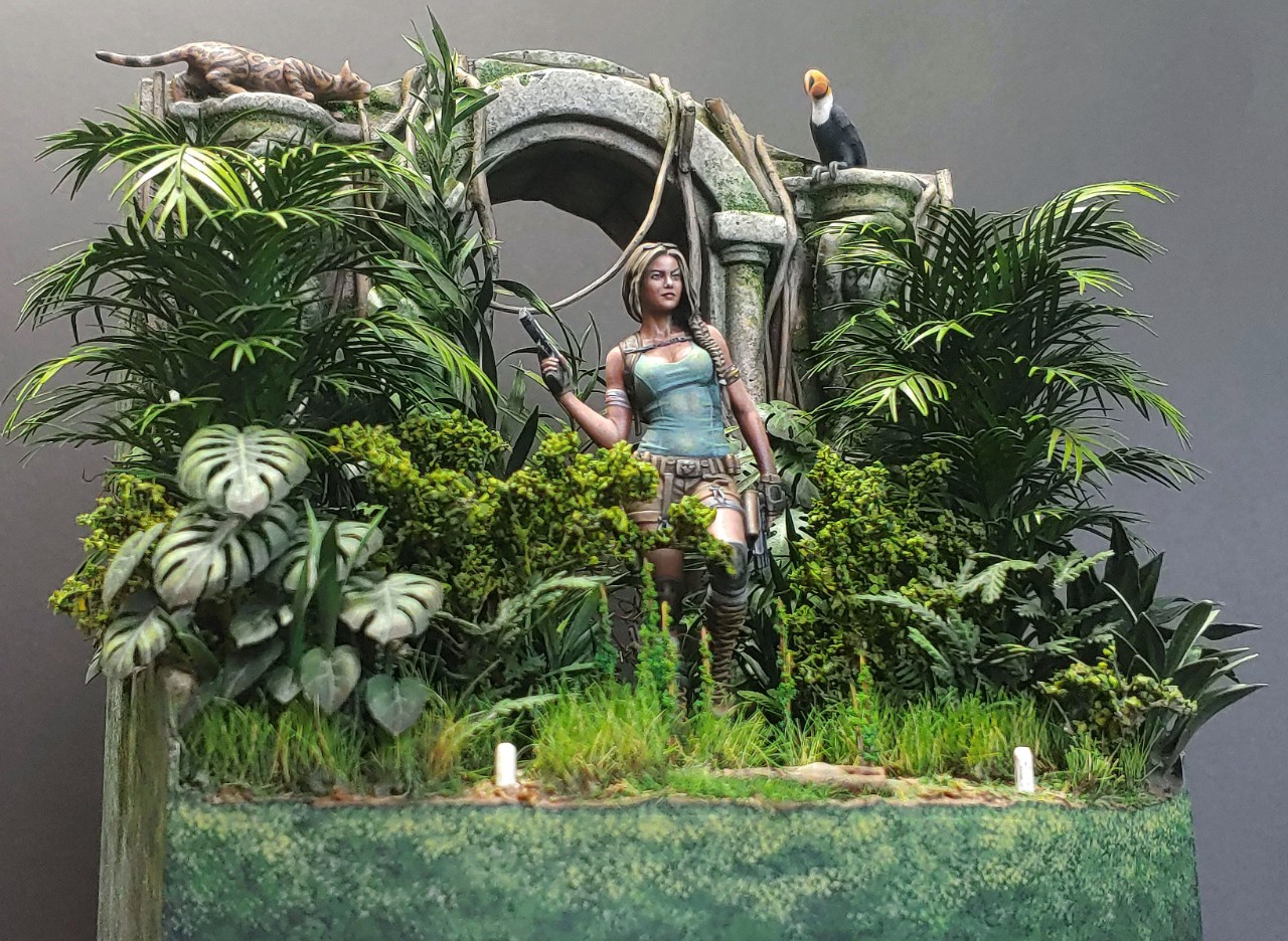 툼레이더의 라라크로포드 입니다. 베이스는 제작기에 설명이 돼있고, 식물들은 종이, 황동봉, 인공수초, 디오라마 재료, 그 외 자연에서 얻은것 등으로 만들었고 고양이하고 새는 스컬피와 에폭시로 만들었습니다.