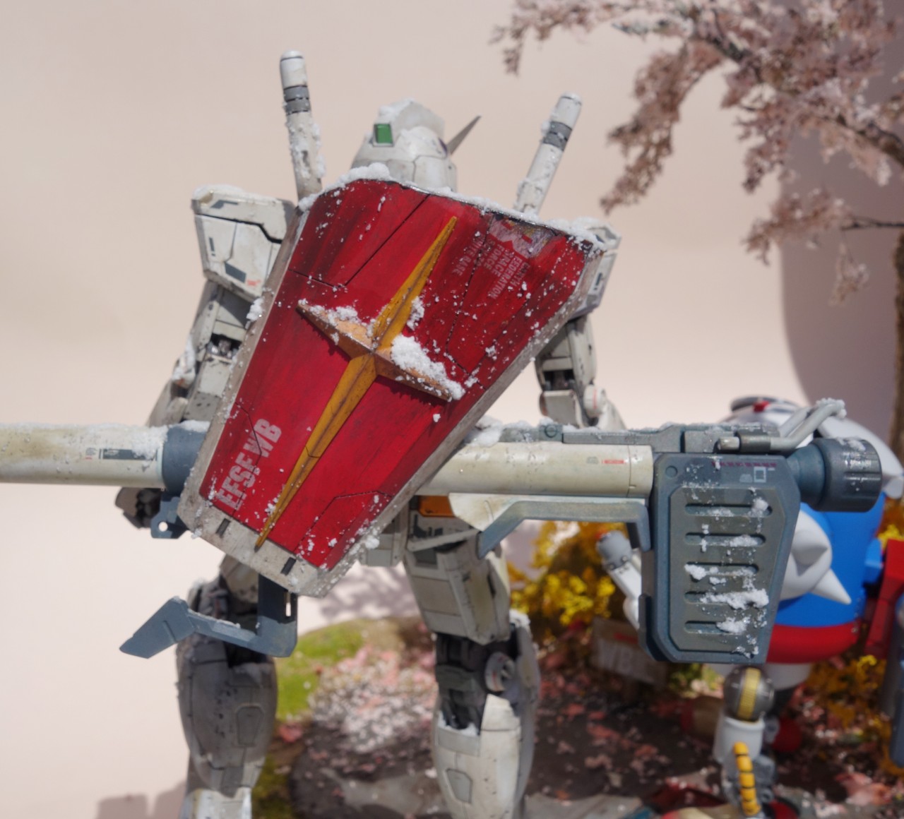 봄을 상징하는 벚꽃과 개나리를 만들어 주었고, 건담 3.0은 전투 후 겨울을 지나 봄으로 가는 모습.