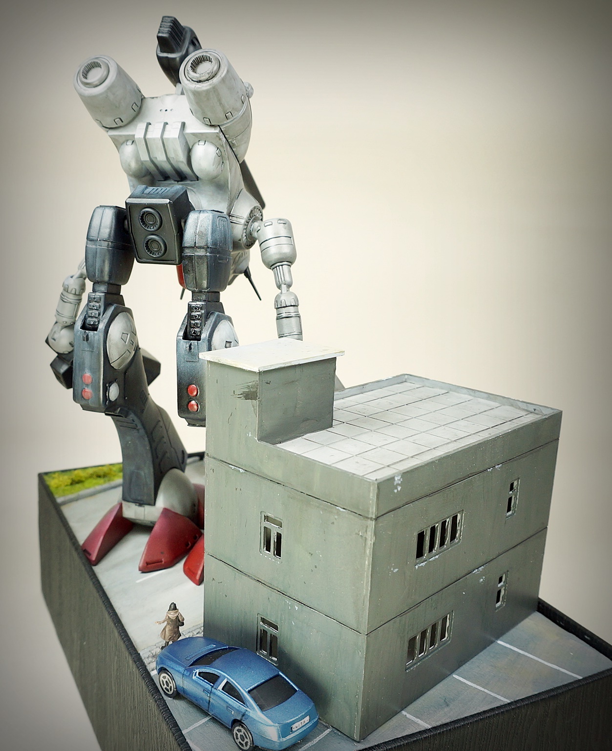 베이스는 마크로스 함내에 그라지가 침투해서 시민들이 놀라는 설정으로 만들었고 건물은 알리에서 구입한 제품을 개조했고, 자동차와 피규어는 건축모형용을 대충 손봐서 사용했습니다. 용도가 그렇다보니 디테일이 많이 떨어지는데 그냥 구색이라고 생각하고 많이 공을 들이지는 못했습니다.