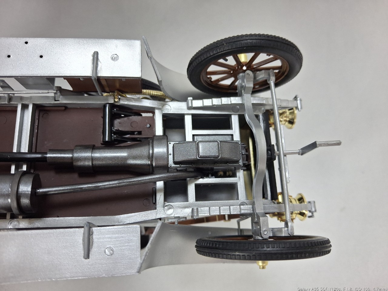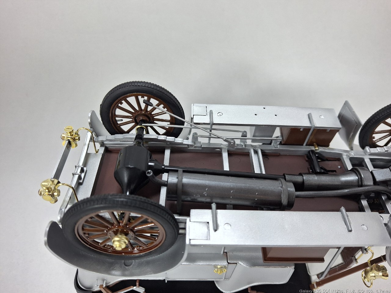 계기반이랄 것도 없는 대시보드 입니다. 바늘 달린 계측기가 없습니다. 키트가 디테일이 부족해서라기 보단, 1907년도 자동차니 정말 그럴 수도 있다고 생각합니다.ㅎㅎ