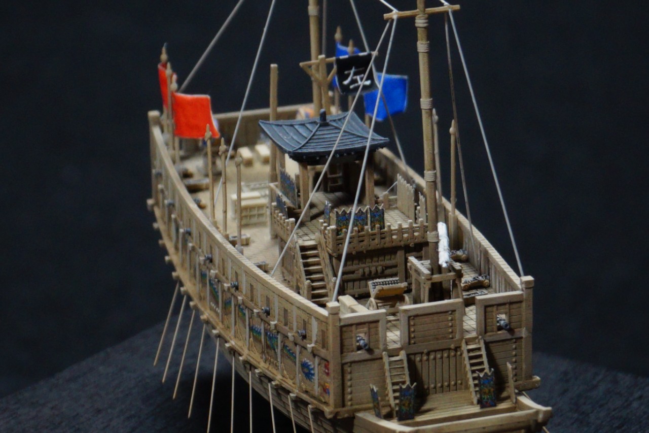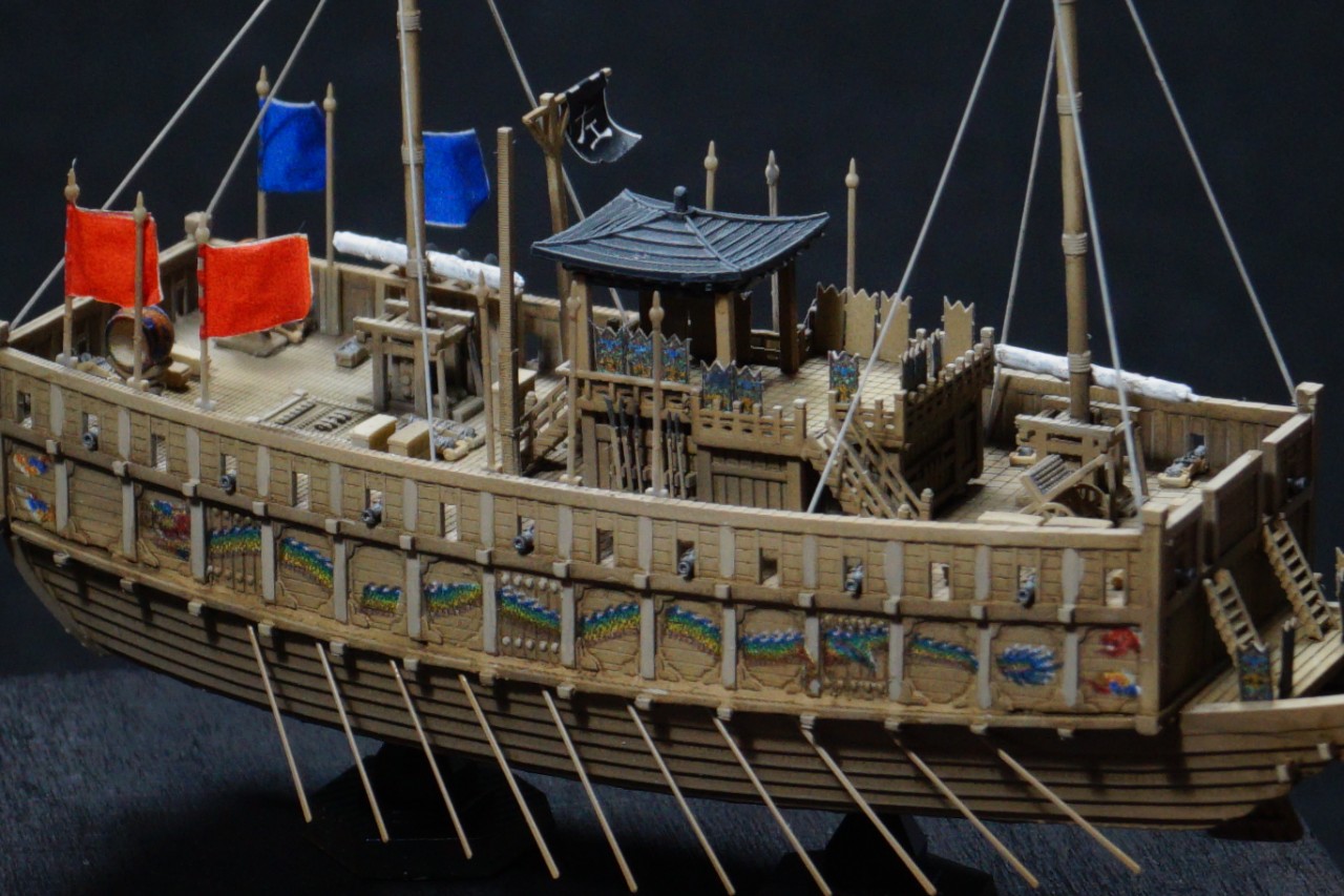토리팩토리 1/350 판옥선이며, 거북선 갑, 늘 형에 비해 일주일가량 작업이 더 걸렸습니다. 이유는 거북선에 비해 갑판 위 구조물들이 많았고 데칼 작업과 에칭 작업이 생각보다 많아 작업시간이 많이 걸렸습니다. 하지만 작은 크기에 엄청난 디테일로 제작 시 만족도가 높으며 판옥선의 결정판이지 않을까 하는 생각을 하게 됩니다.